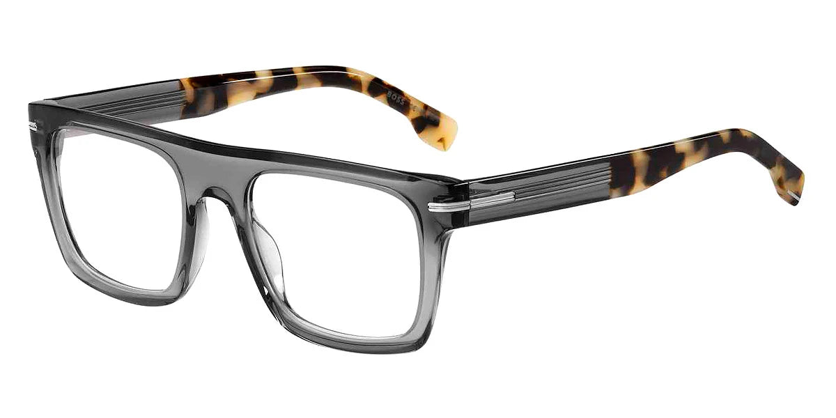 Gray Havana (0ACI) Eyeglasses (1597 0ACI 52) by Boss™. Size: 52-20-145, Shape: Square, Material: Eco Acetate.