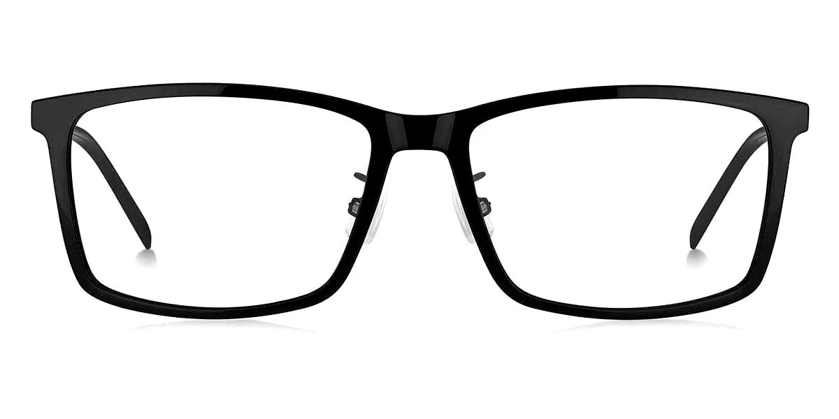 Black (0807) Eyeglasses (1621/F 0807 55) by Boss™. Size: 55-16-145, Shape: Rectangle, Material: Polyamide Inj-Gril. and Beta Titanium.