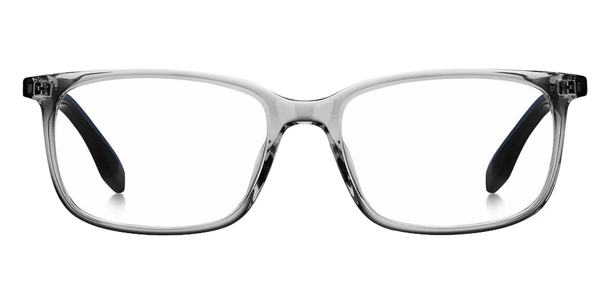Gray (0KB7) Eyeglasses (1681 0KB7 49) by Boss™. Size: 49-15-135, Shape: Square, Material: Light Acetate and Polyamide Inj-Gril..