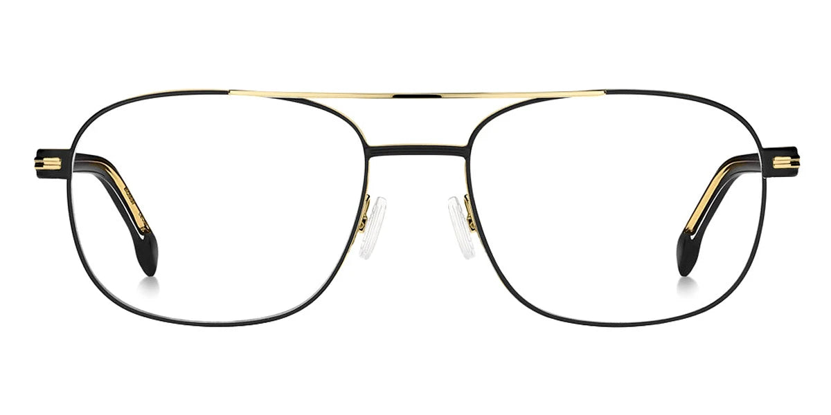 Matte Black Gold (0I46) Eyeglasses (1756 0I46 54) by Boss™. Size: 54-18-150, Shape: Aviator, Material: Stainless Steel and Eco Acetate.