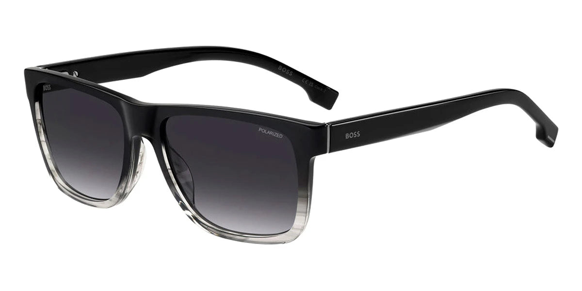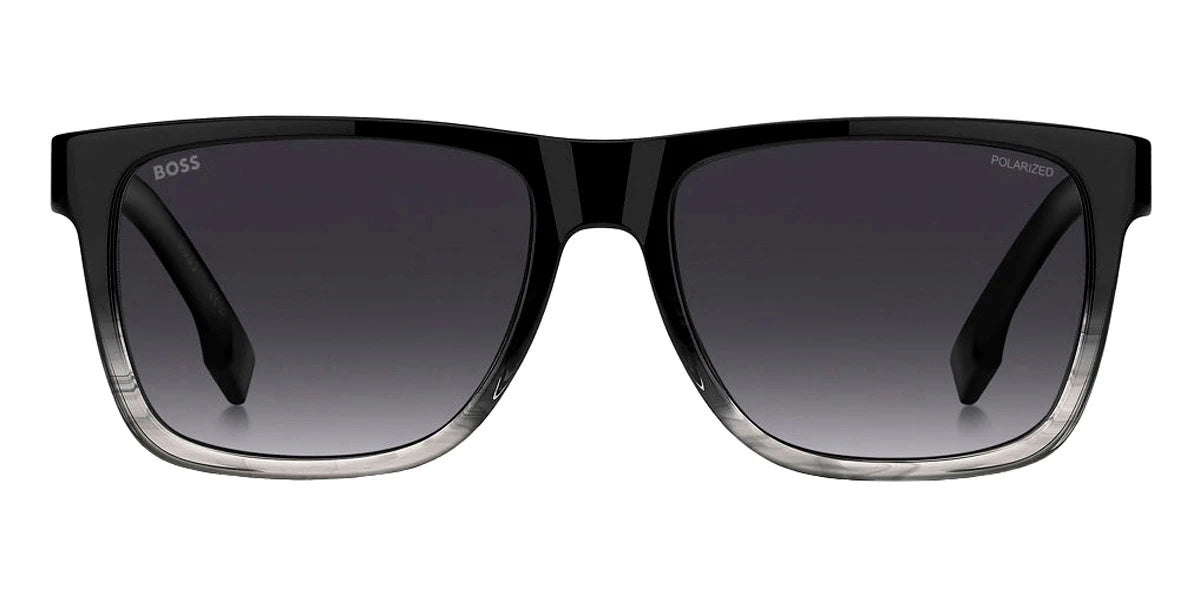 Black (0807M9) Sunglasses with Gray Polarized lenses (1759/G/S 0807M9 57) by Boss™. Size: 57-17-145, Shape: Rectangle, Material: Eco Acetate and Metal.