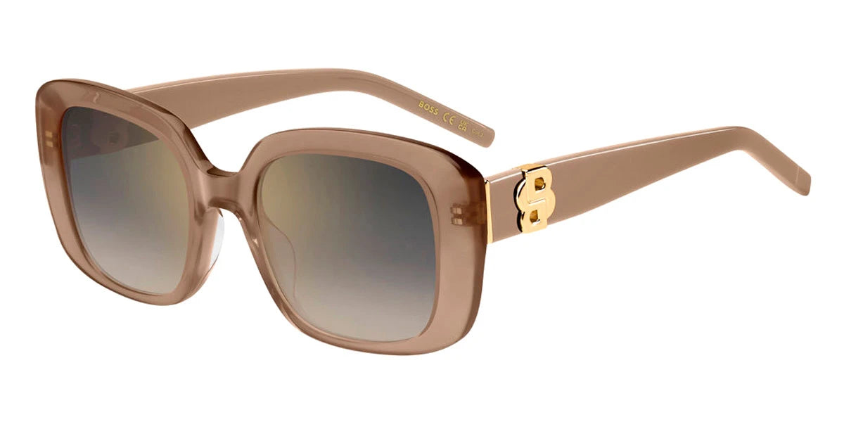 Nude (0FWMFQ) Sunglasses with Gray Shaded Gold Mirrored lenses (1791/G/S 0FWMFQ 52) by Boss™. Size: 52-21-145, Shape: Square, Material: Eco Acetate and Metal.