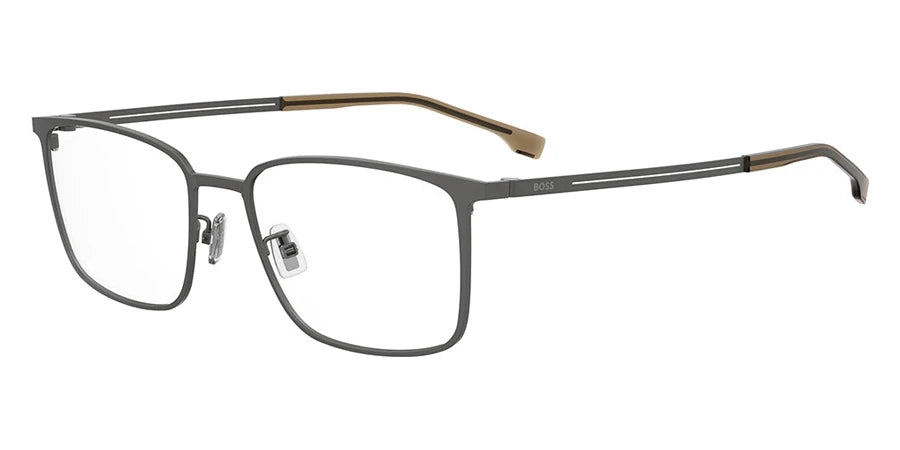 Matte Ruthenium (0R81) Eyeglasses (1823/G 0R81 55) by Boss™. Size: 55-19-145, Shape: Rectangle, Material: Titanium and Beta-Titanium.