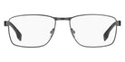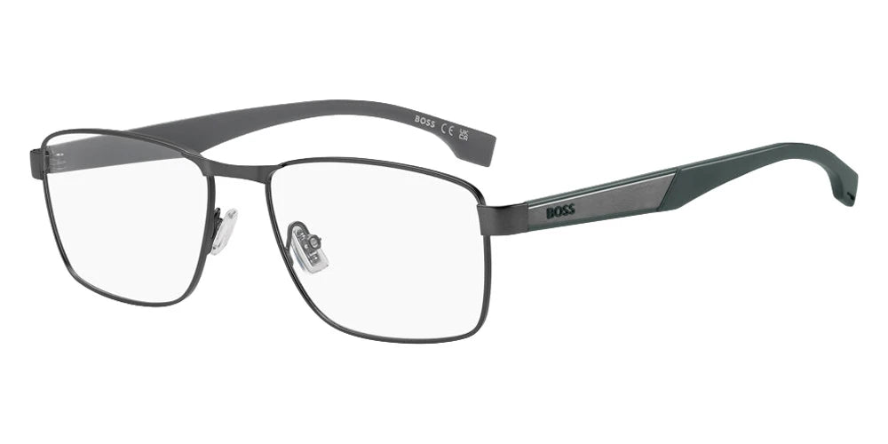 Matte Ruthenium Black (0SVK) Eyeglasses (1830 0SVK 56) by Boss™. Size: 56-17-150, Shape: Square, Material: Stainless Steel and Rubber.