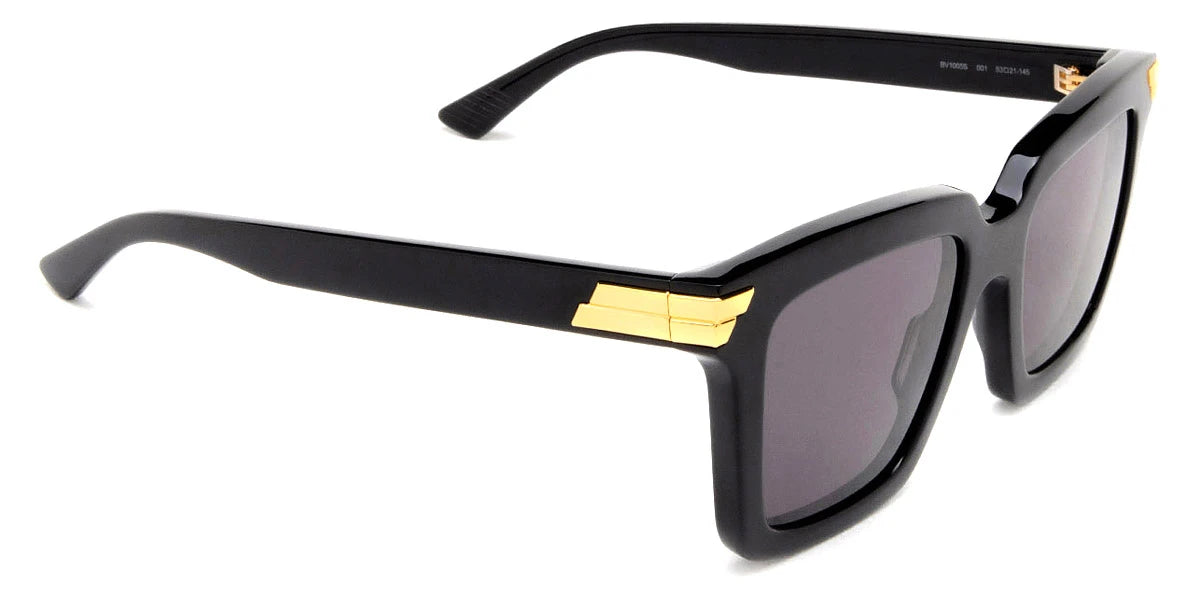 Black (001) Sunglasses with Gray lenses (BV1005S 001 53) by Bottega Veneta™. Size: 53-21-145, Shape: Square, Material: Acetate.