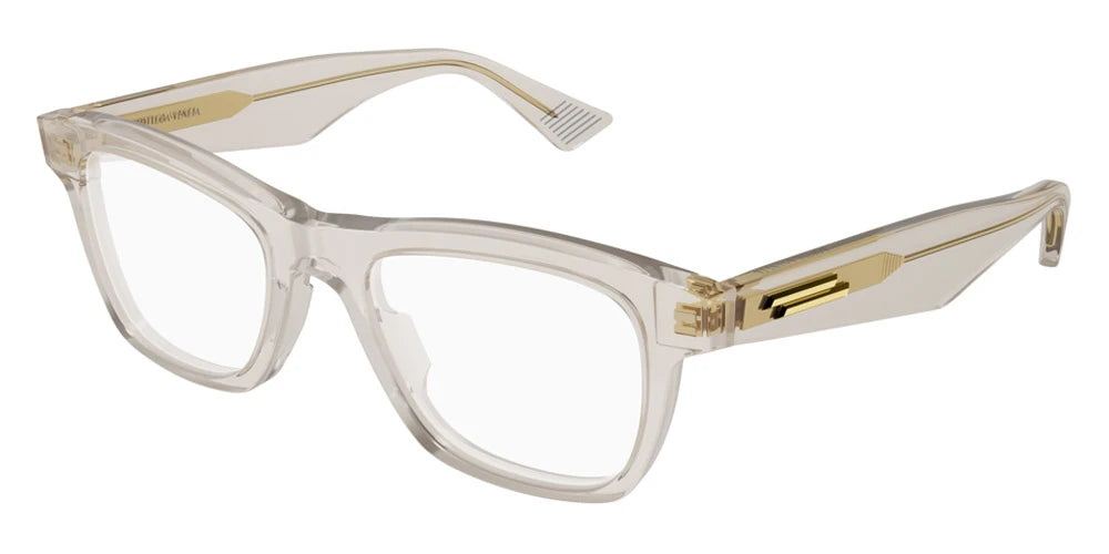 Beige (003) Eyeglasses (BV1120O 003 51) by Bottega Veneta™. Size: 51-20-145, Shape: Square, Material: Acetate.