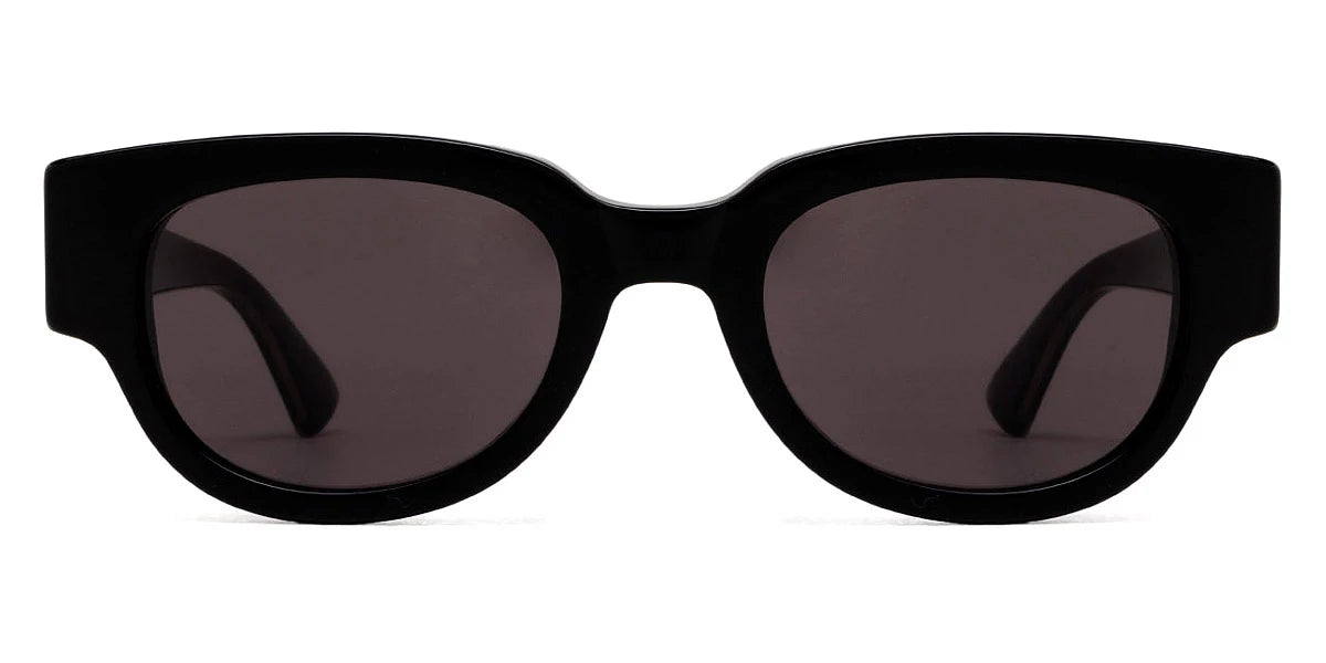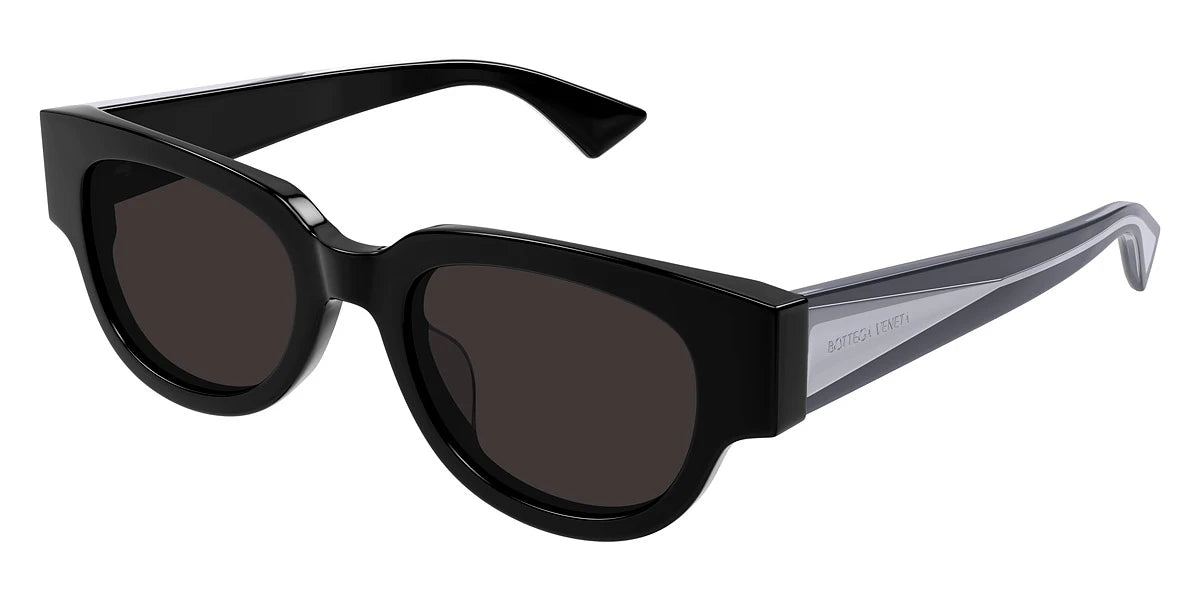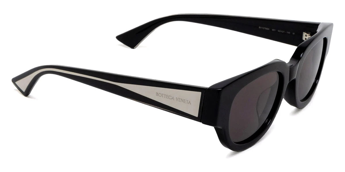 Black/Gray (001) Sunglasses with Gray lenses (Tri-Fold BV1278SA 001 52) by Bottega Veneta™. Size: 52-21-145, Shape: Cat-Eye, Material: Recycled Acetate and Resin.