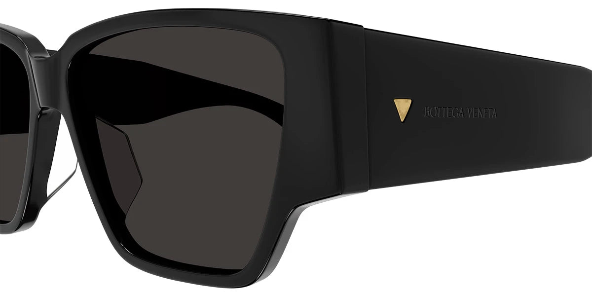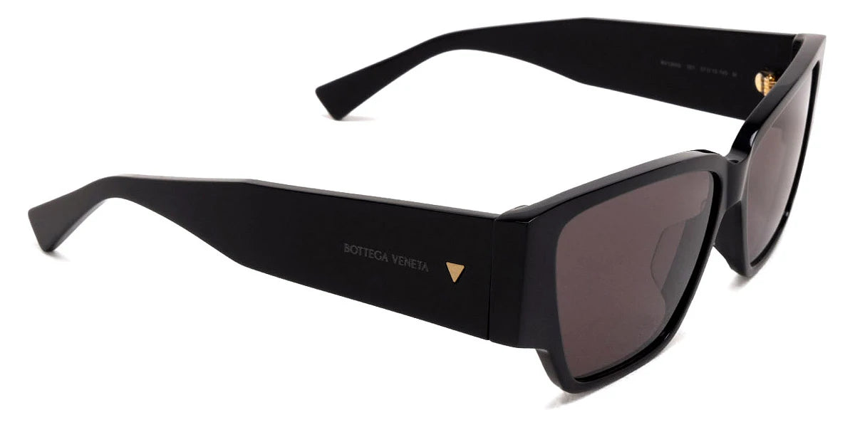 Black (001) Sunglasses with Gray lenses (BV1285S 001 57) by Bottega Veneta™. Size: 57-13-140, Shape: Rectangle, Material: Recycled Acetate.