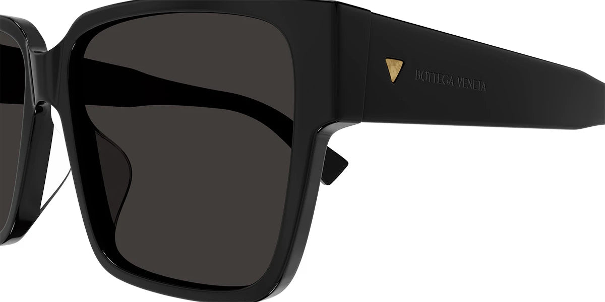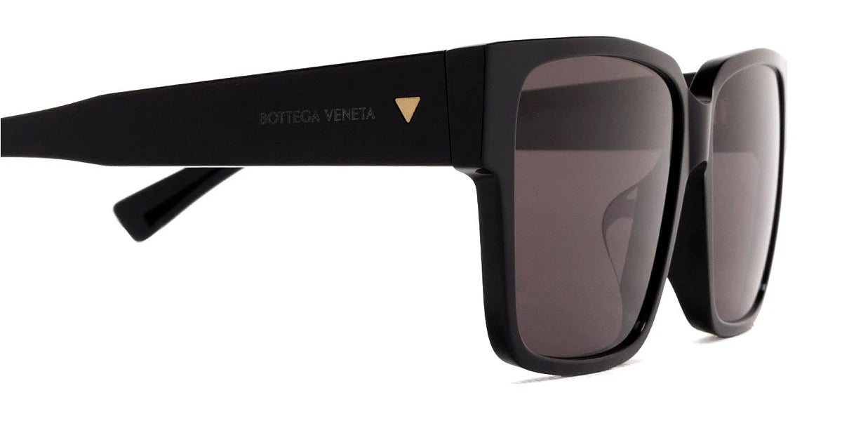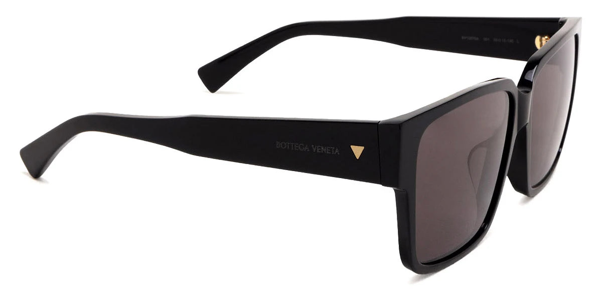 Black (001) Sunglasses with Gray lenses (BV1287SA 001 59) by Bottega Veneta™. Size: 59-15-145, Shape: Square, Material: Recycled Acetate.