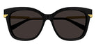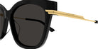 Black/Gold (001) Sunglasses with Gray lenses (Classic BV1296SA 001 57) by Bottega Veneta™. Size: 57-15-145, Shape: Cat-Eye, Material: Recycled Acetate and Metal.