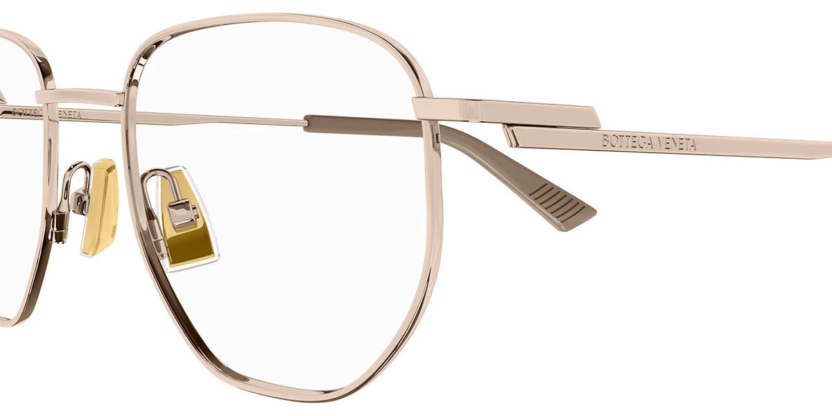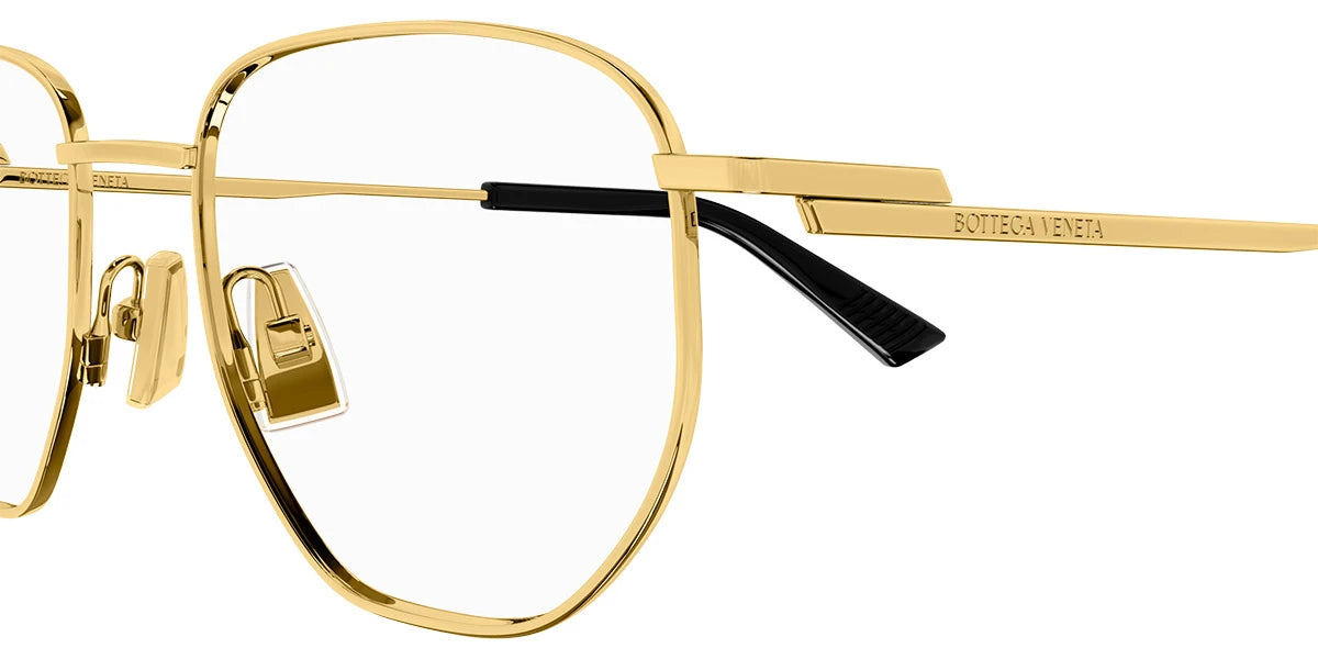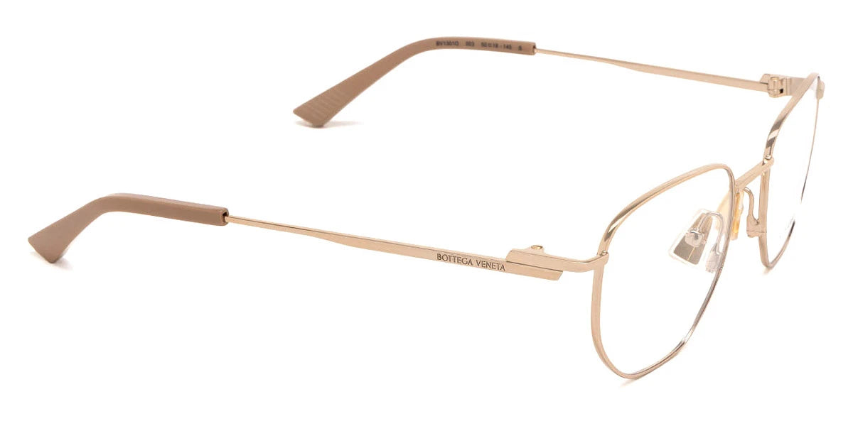 Gold (003) Eyeglasses (BV1301O 003 50) by Bottega Veneta™. Size: 50-19-145, Shape: Square, Material: Metal.