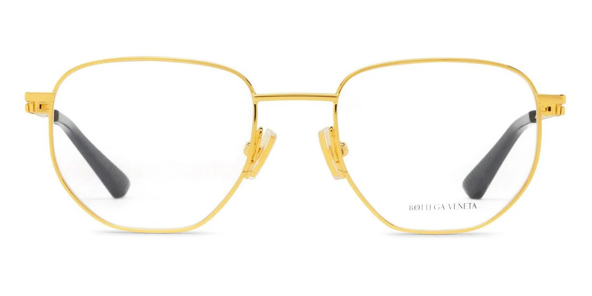BV1301O Eyeglasses by Bottega Veneta™. The square shape design feature a full rim metal frame. This model is available in two different color combinations and sizes. Bottega Veneta is an Italian lux brand that produces the finest men's and women's clothes, bags, leather goods, extraordinary home items, and eyewear. Being famous among people who prefer exclusive things, this company uses only high-quality materials for creating excellent pieces to become part of the owner's lives with impeccable taste. The fashion house is inspired by the culture of Italy and brings a fresh look of luxury and innovation that characterizes every item made by the brand following the latest technologies. Bottega Veneta eyewear is manufactured with meticulous attention to the tiniest details, tireless perfectionism, and high precision. There are a lot of classic and modern frames from acetate and metal to add a charming look to any style.