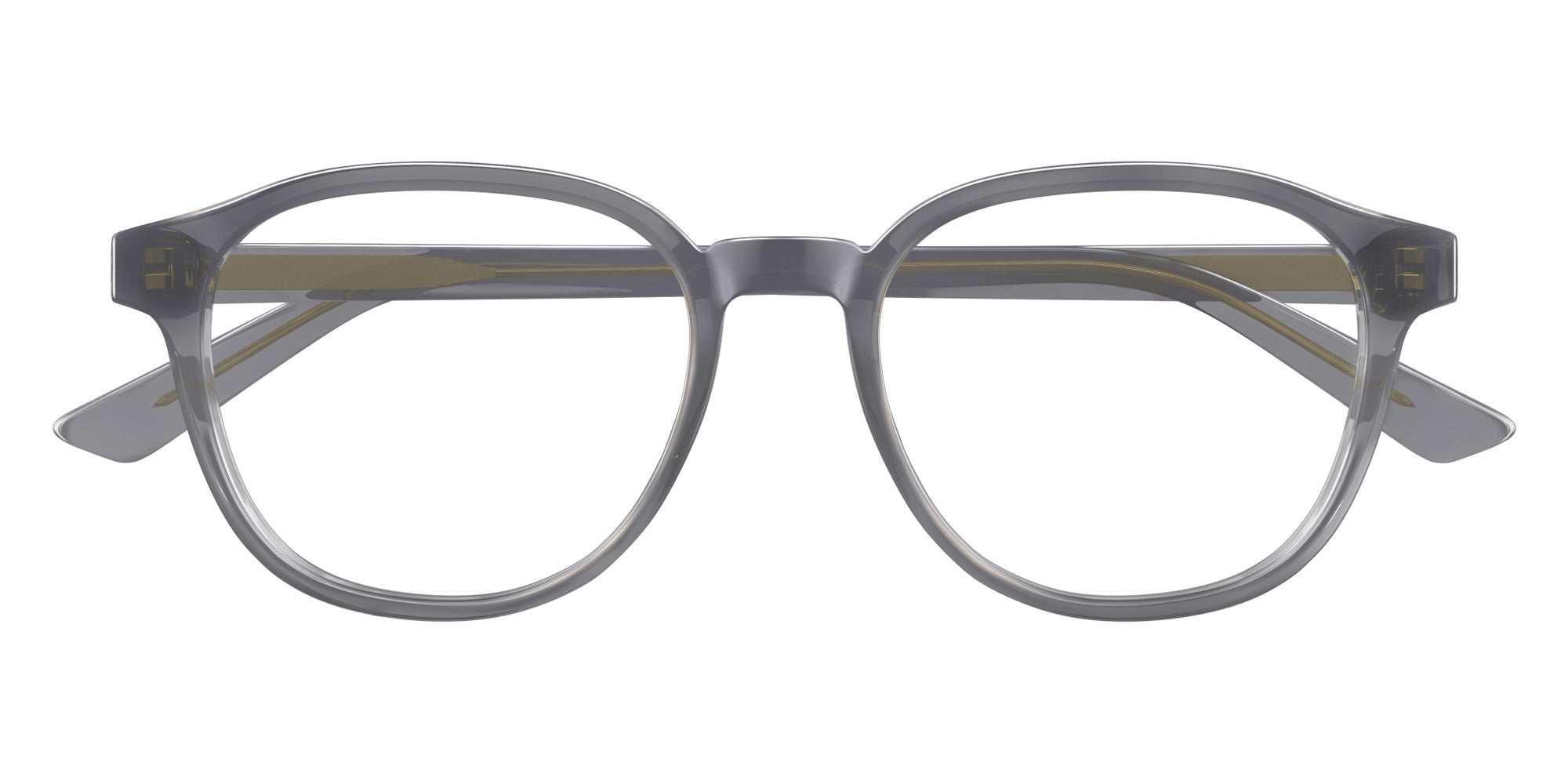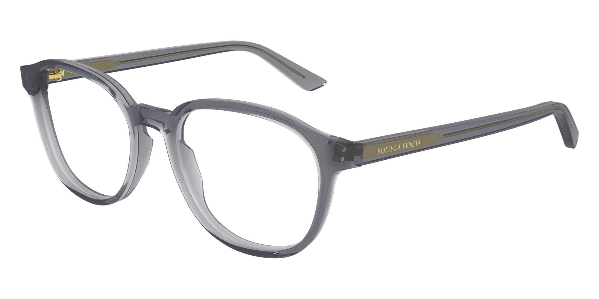 Gray (009) Eyeglasses (BV1312O 009 52) by Bottega Veneta. Size: 52-18-145, Shape: Wayfarer, Material: Recycled Acetate.