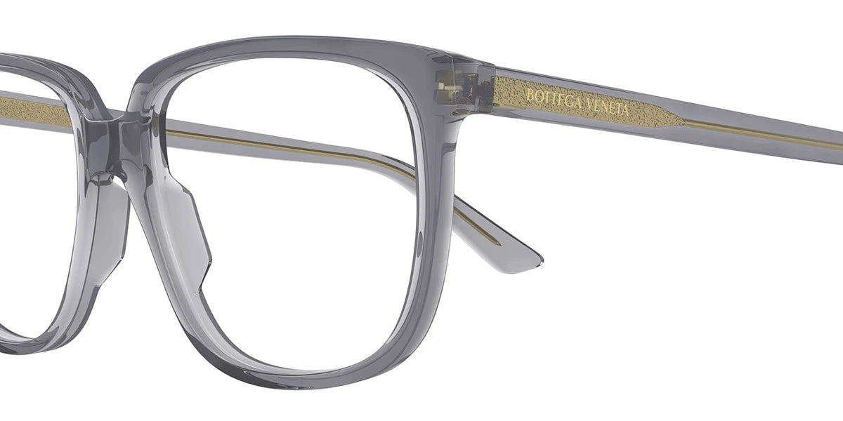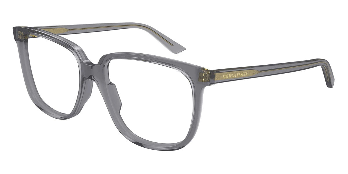 Gray (004) Eyeglasses (BV1315O 004 56) by Bottega Veneta™. Size: 56-16-145, Shape: Oversized, Material: Recycled Acetate.