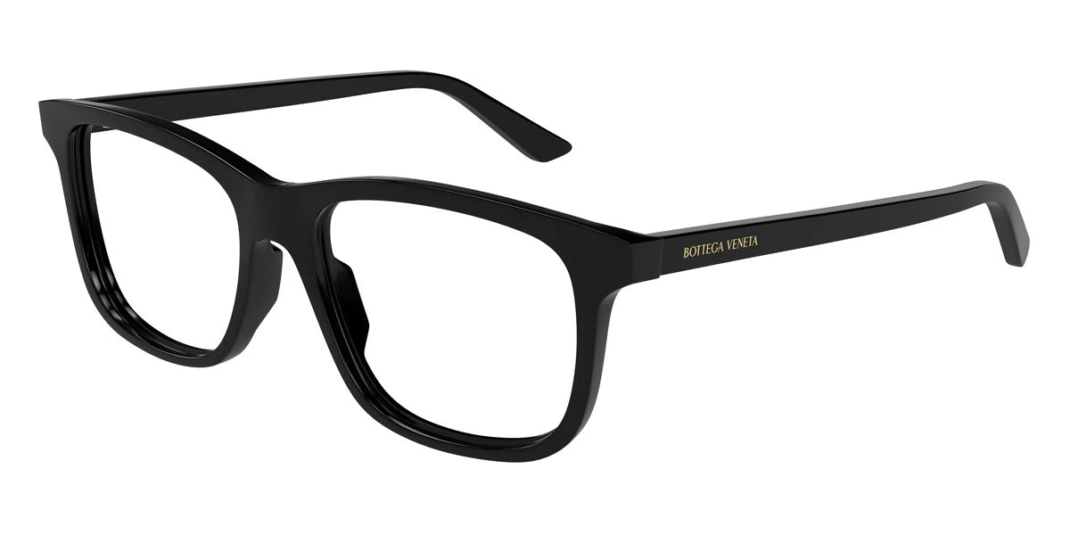 Black (001) Eyeglasses (BV1316O 001 54) by Bottega Veneta™. Size: 54-16-145, Shape: Square, Material: Recycled Acetate.
