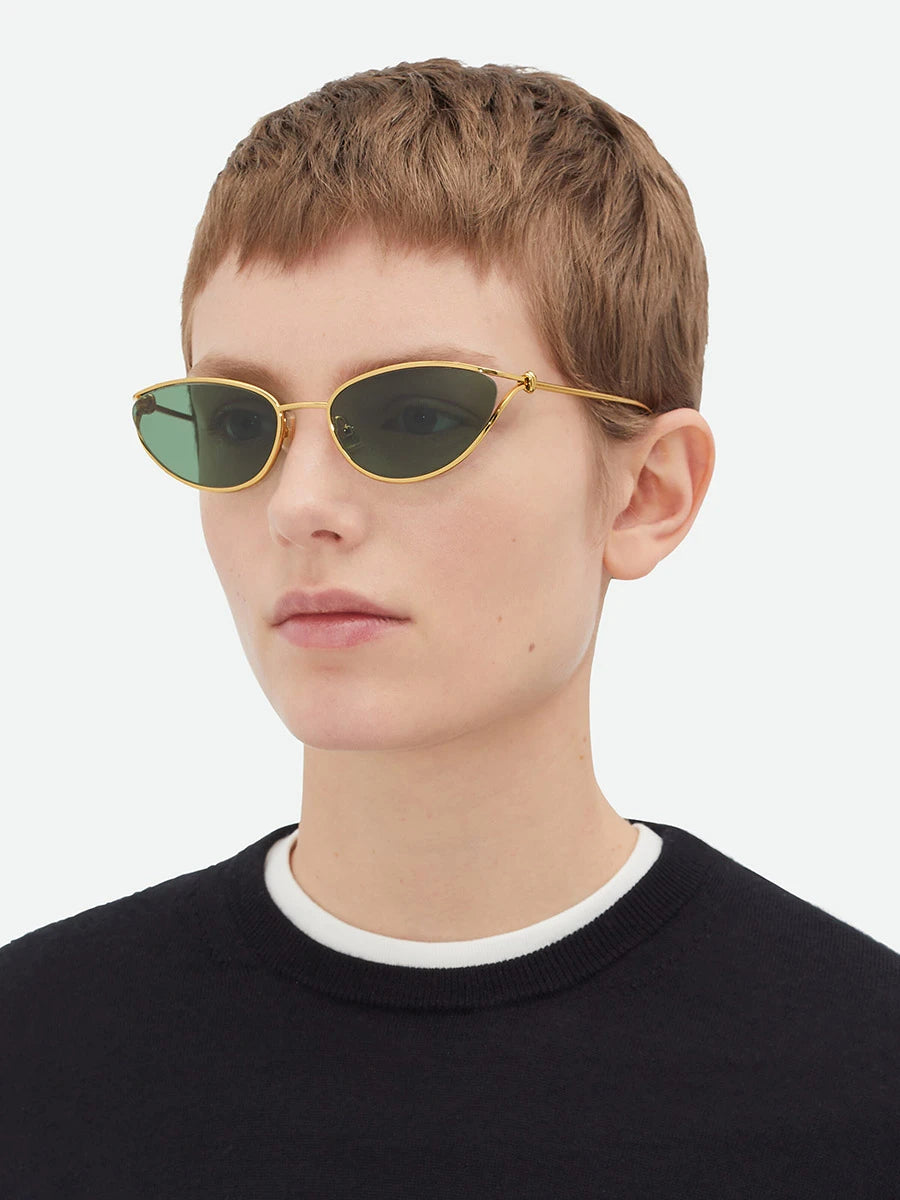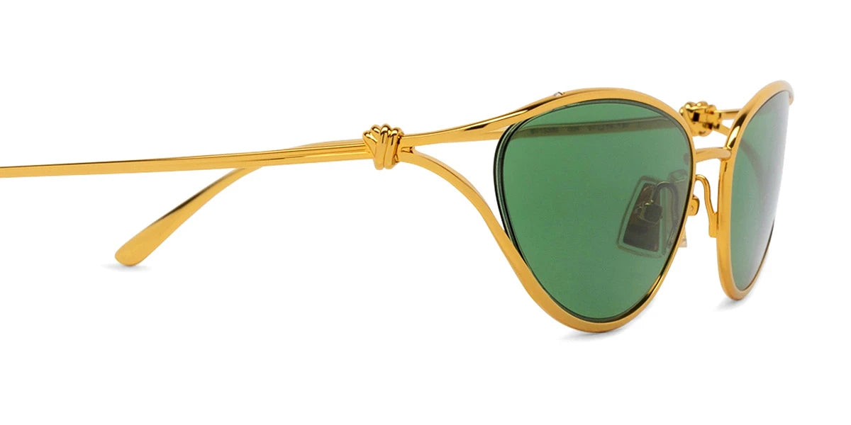 Gold (003) Sunglasses with Brown lenses (Knot BV1330S 003 57) by Bottega Veneta™. Size: 57-19-130, Shape: Cat-Eye, Material: Metal.
