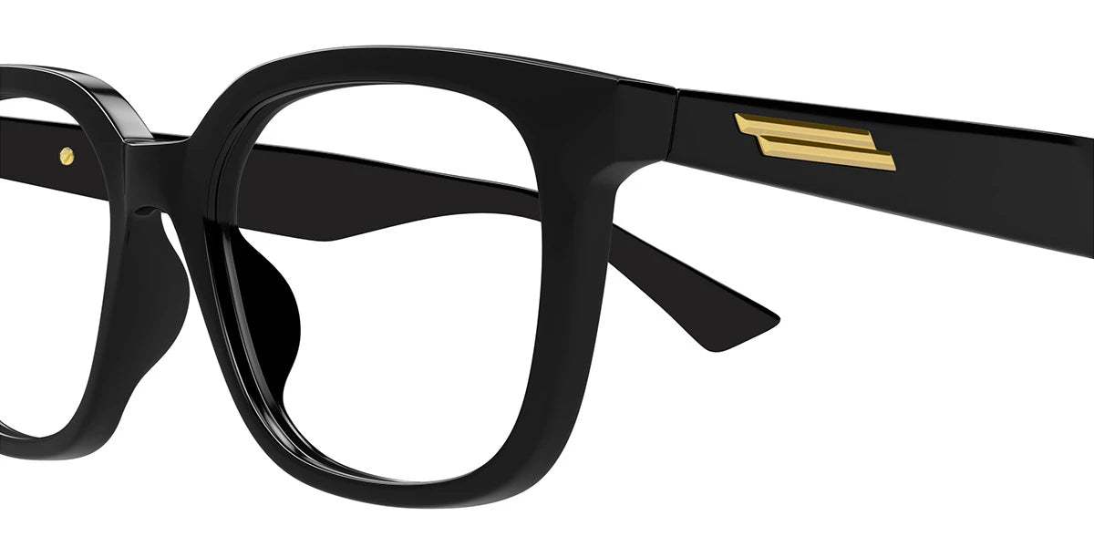 Black (001) Eyeglasses (BV1334OA 001 52) by Bottega Veneta™. Size: 52-18-145, Shape: Square, Material: Recycled Acetate.