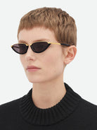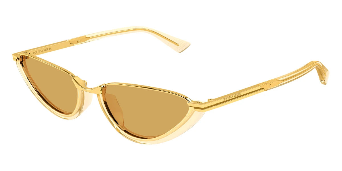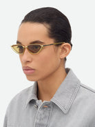 Yellow (003) Sunglasses with Brown lenses (Classic BV1346S 003 56) by Bottega Veneta™. Size: 56-17-145, Shape: Cat-Eye, Material: Recycled Acetate and Metal.