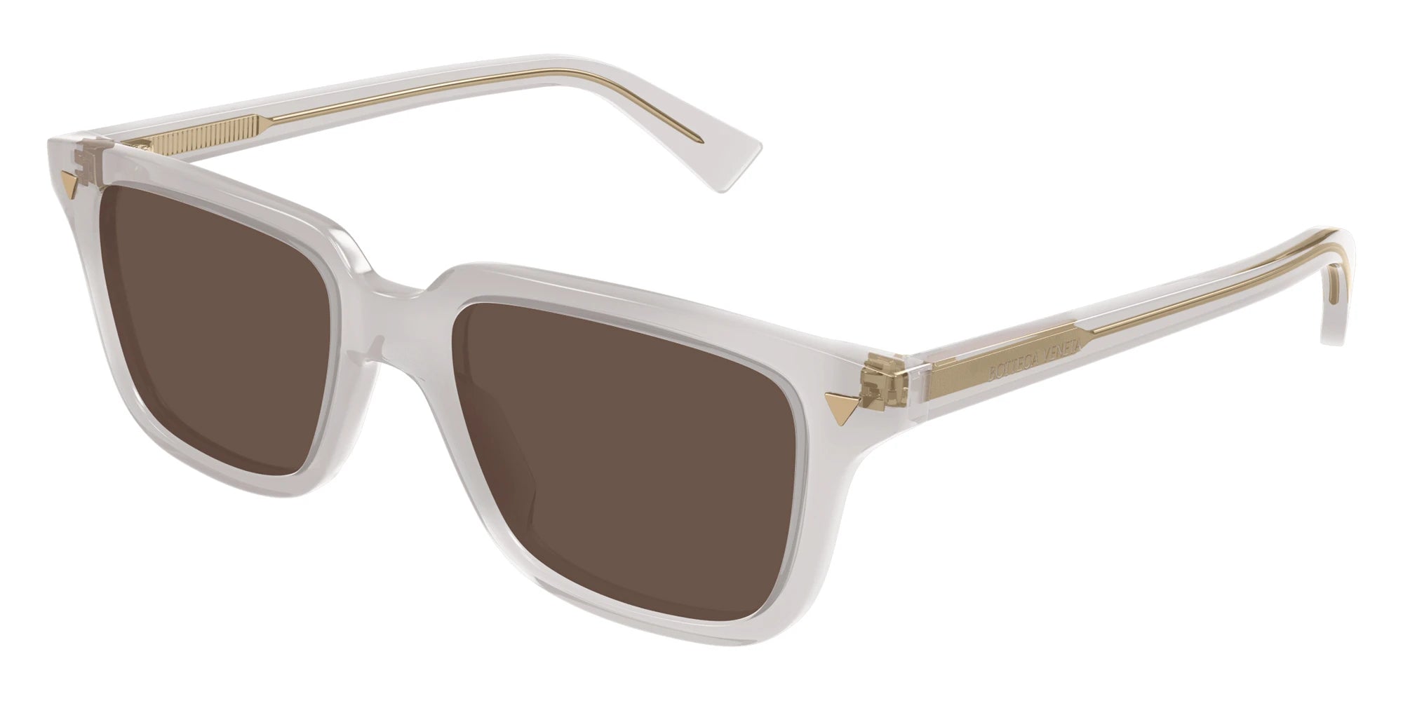Gray (004) Sunglasses with Brown lenses (BV1363S 004 50) by Bottega Veneta™. Size: 50-18-145, Shape: Square, Material: Recycled Acetate.