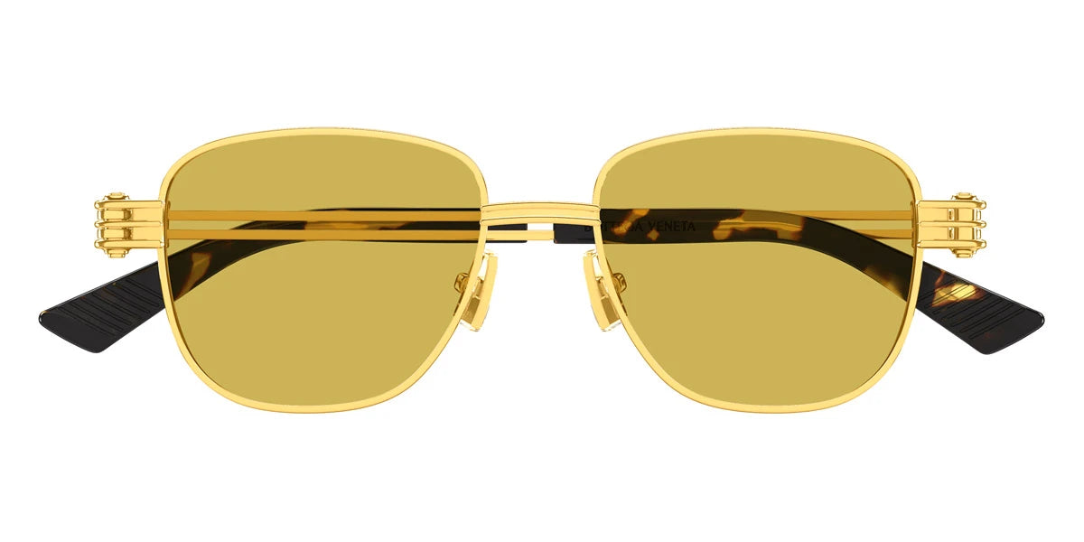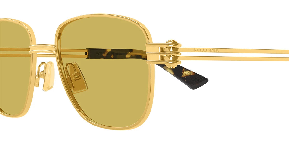 Gold (002) Sunglasses with Yellow lenses (BV1380S 002 51) by Bottega Veneta™. Size: 51-18-150, Shape: Square, Material: Metal.