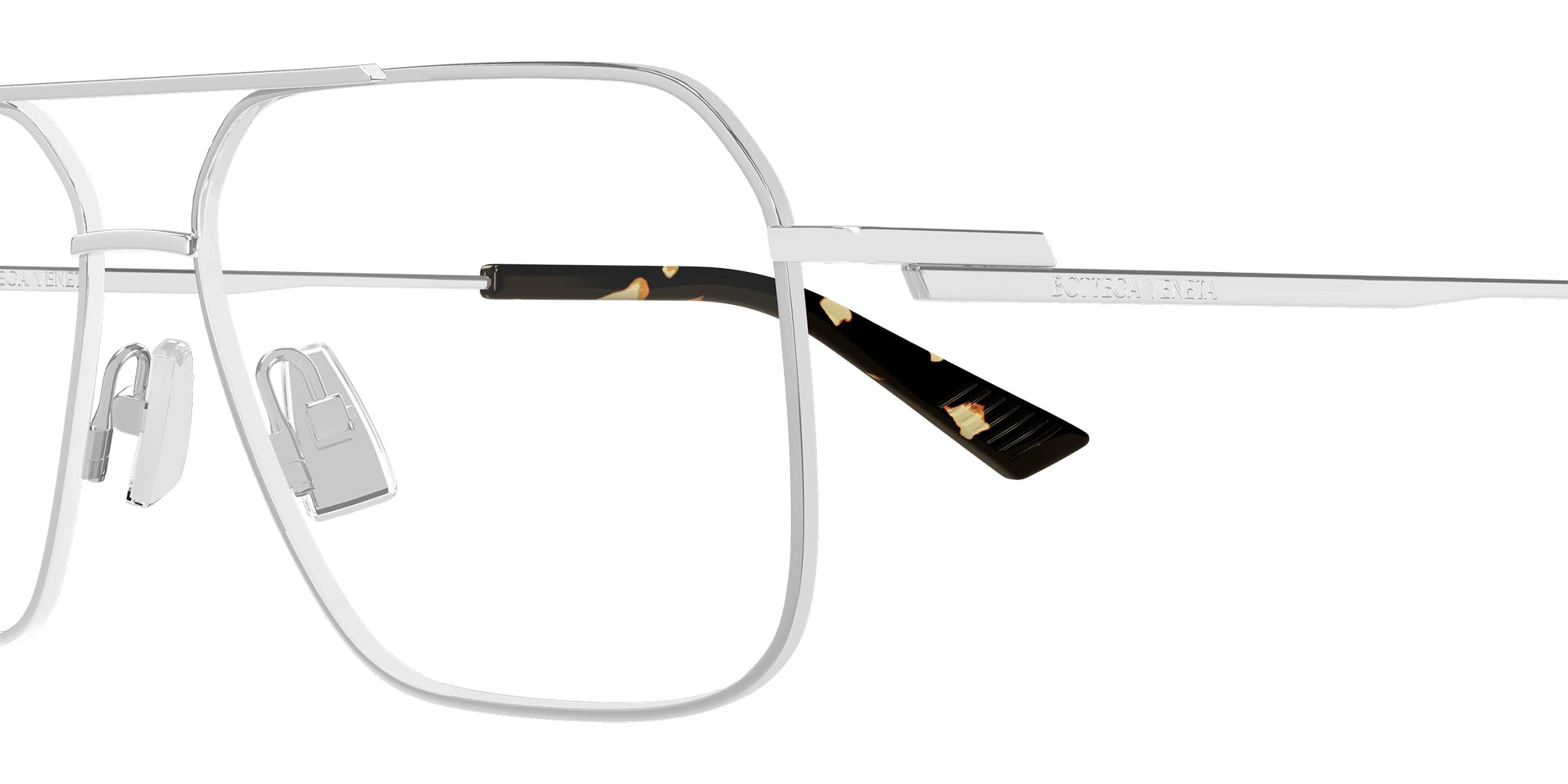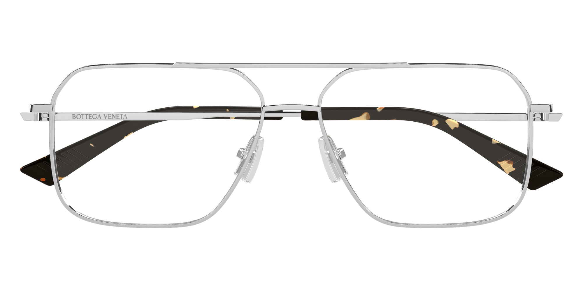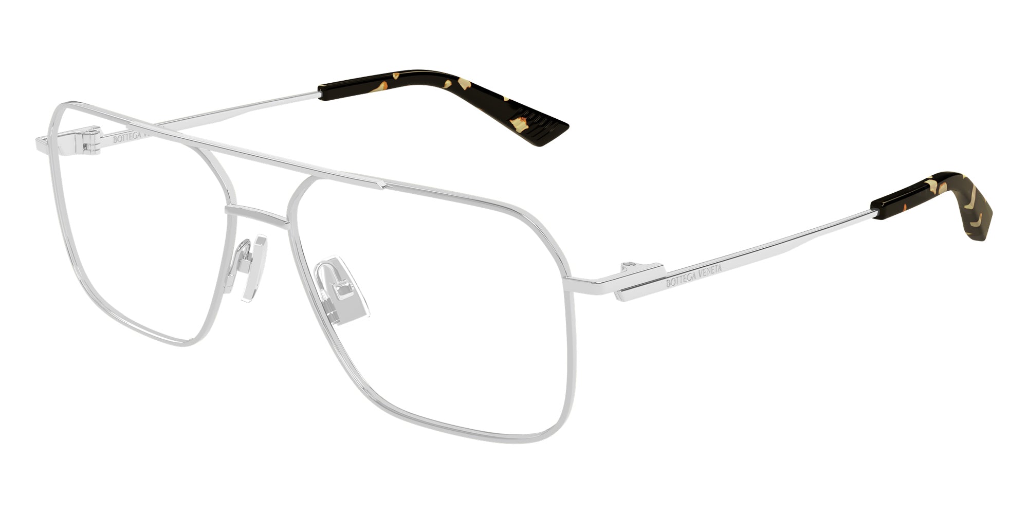Silver (002) Eyeglasses (BV1384O 002 58) by Bottega Veneta. Size: 58-15-145, Shape: Aviator, Material: Metal and Recycled Acetate.