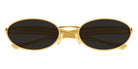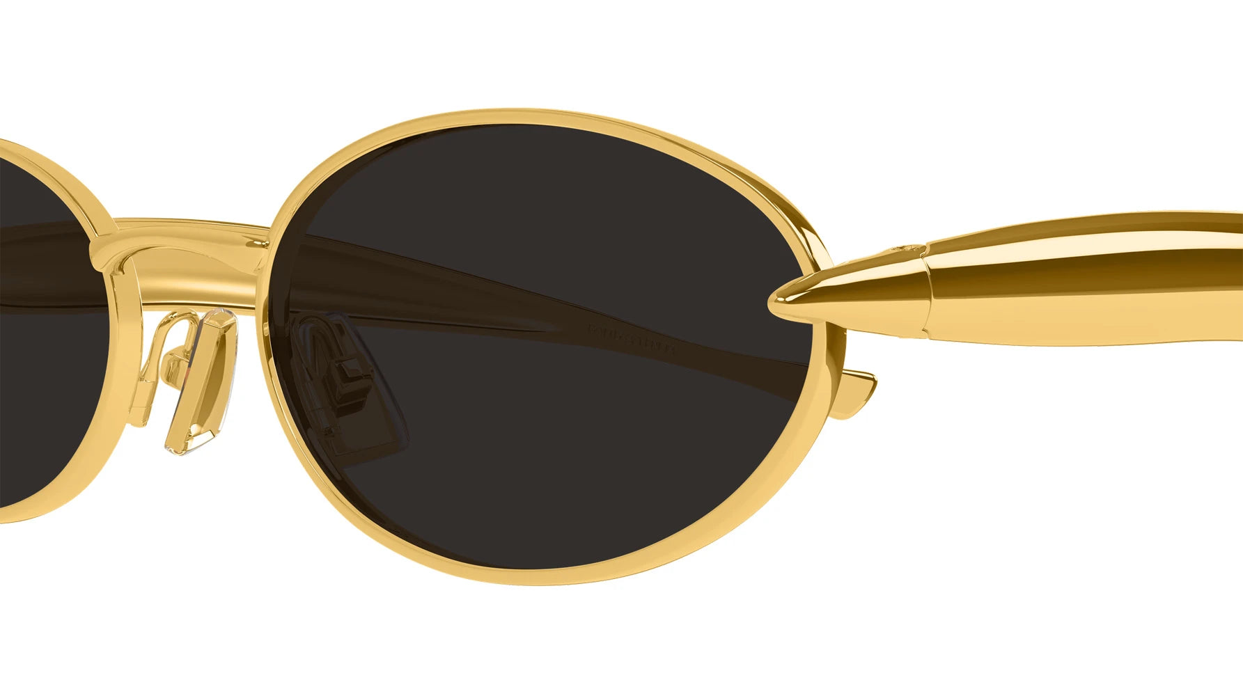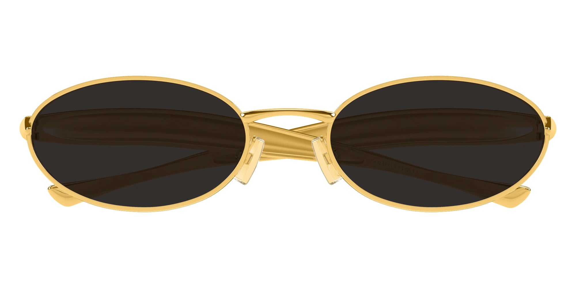 Gold (001) Sunglasses with Gray lenses (BV1386S 001 57) by Bottega Veneta™. Size: 57-21-135, Shape: Oval, Material: Metal.