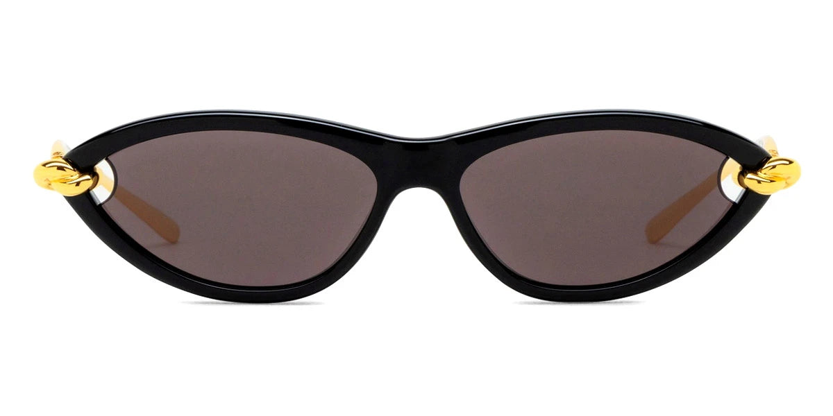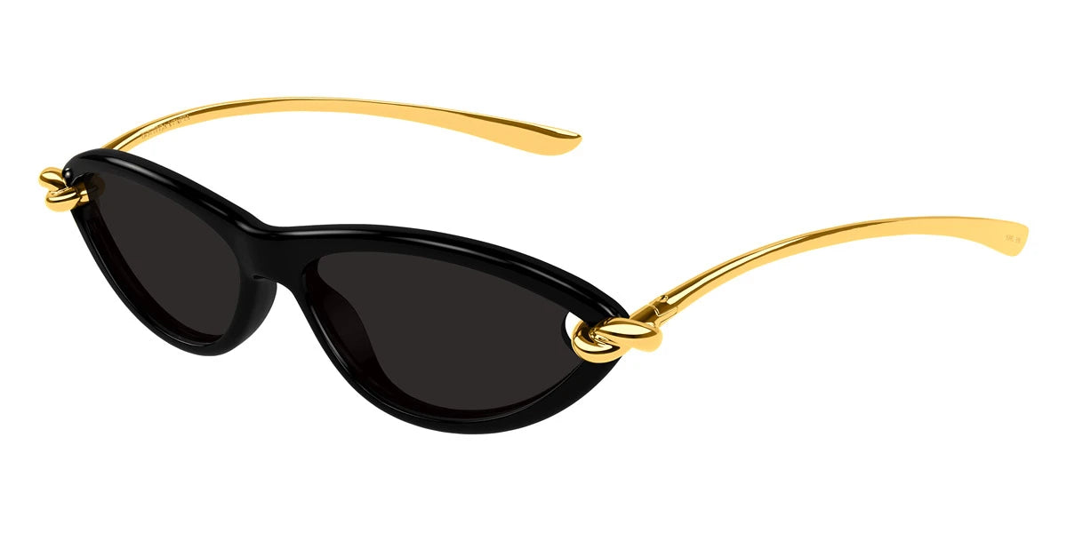 Black/Gold (001) Sunglasses with Gray lenses (BV1390S 001 56) by Bottega Veneta™. Size: 56-14-145, Shape: Cat-Eye, Material: Injection and Metal.