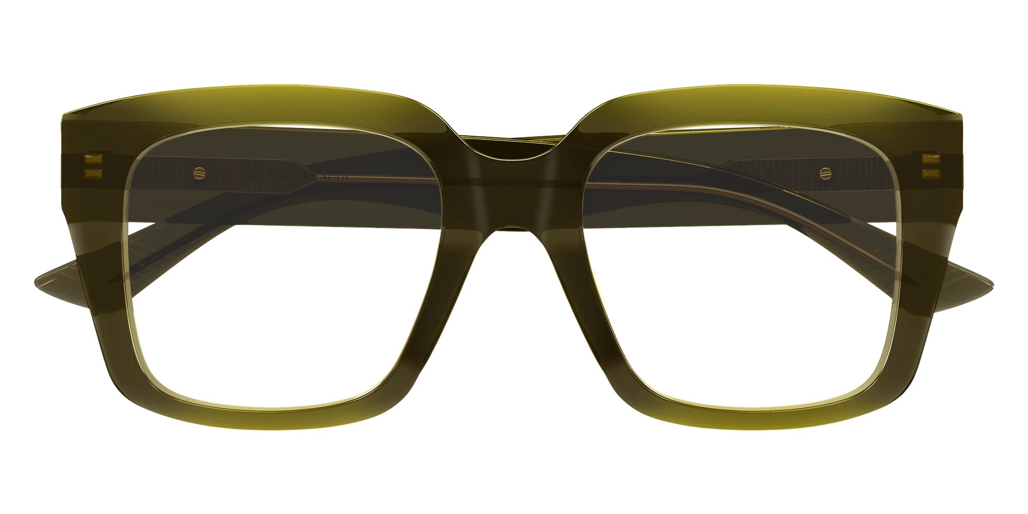 Green (003) Eyeglasses (BV1409O 003 51) by Bottega Veneta™. Size: 51-20-140, Shape: Square, Material: Recycled Acetate.