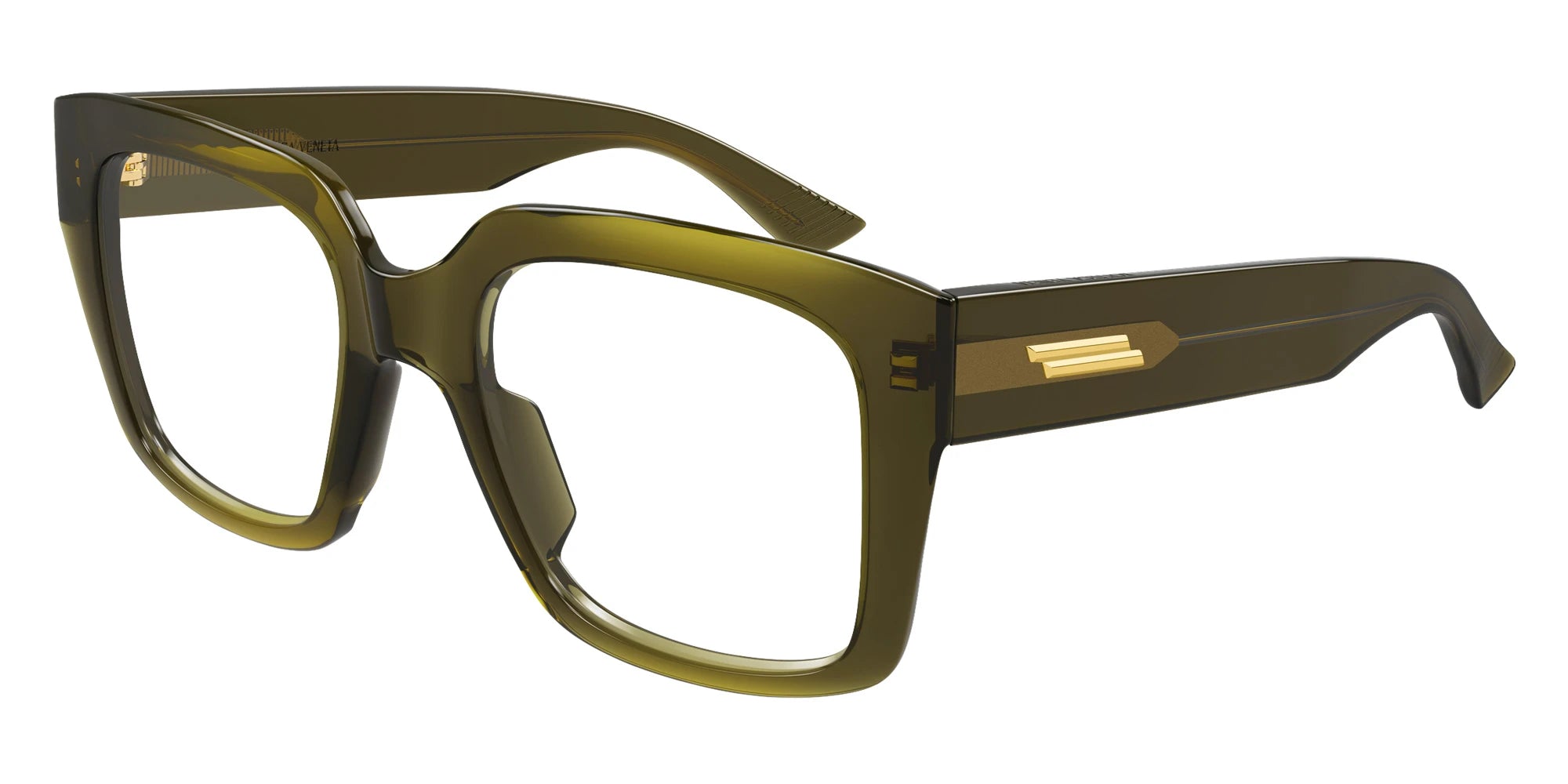 BV1409O Eyeglasses by Bottega Veneta™. The square shape design feature a full rim recycled acetate frame. This model is available in three different color combinations and sizes. Bottega Veneta is an Italian lux brand that produces the finest men's and women's clothes, bags, leather goods, extraordinary home items, and eyewear. Being famous among people who prefer exclusive things, this company uses only high-quality materials for creating excellent pieces to become part of the owner's lives with impeccable taste. The fashion house is inspired by the culture of Italy and brings a fresh look of luxury and innovation that characterizes every item made by the brand following the latest technologies. Bottega Veneta eyewear is manufactured with meticulous attention to the tiniest details, tireless perfectionism, and high precision. There are a lot of classic and modern frames from acetate and metal to add a charming look to any style.