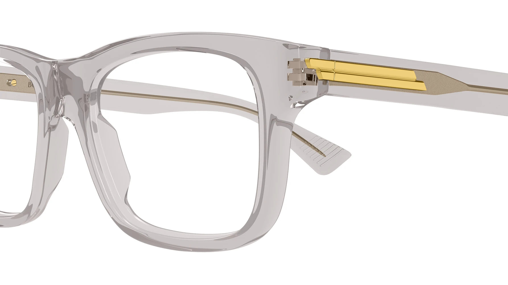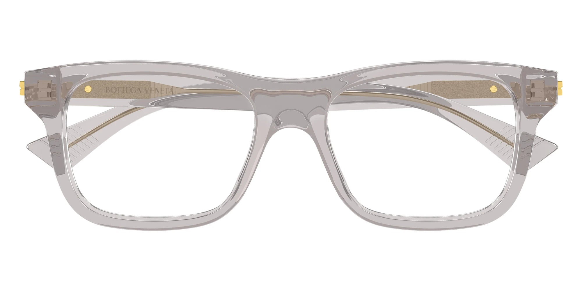 Gray (007) Eyeglasses (BV1412O 007 54) by Bottega Veneta™. Size: 54-18-145, Shape: Square, Material: Recycled Acetate.