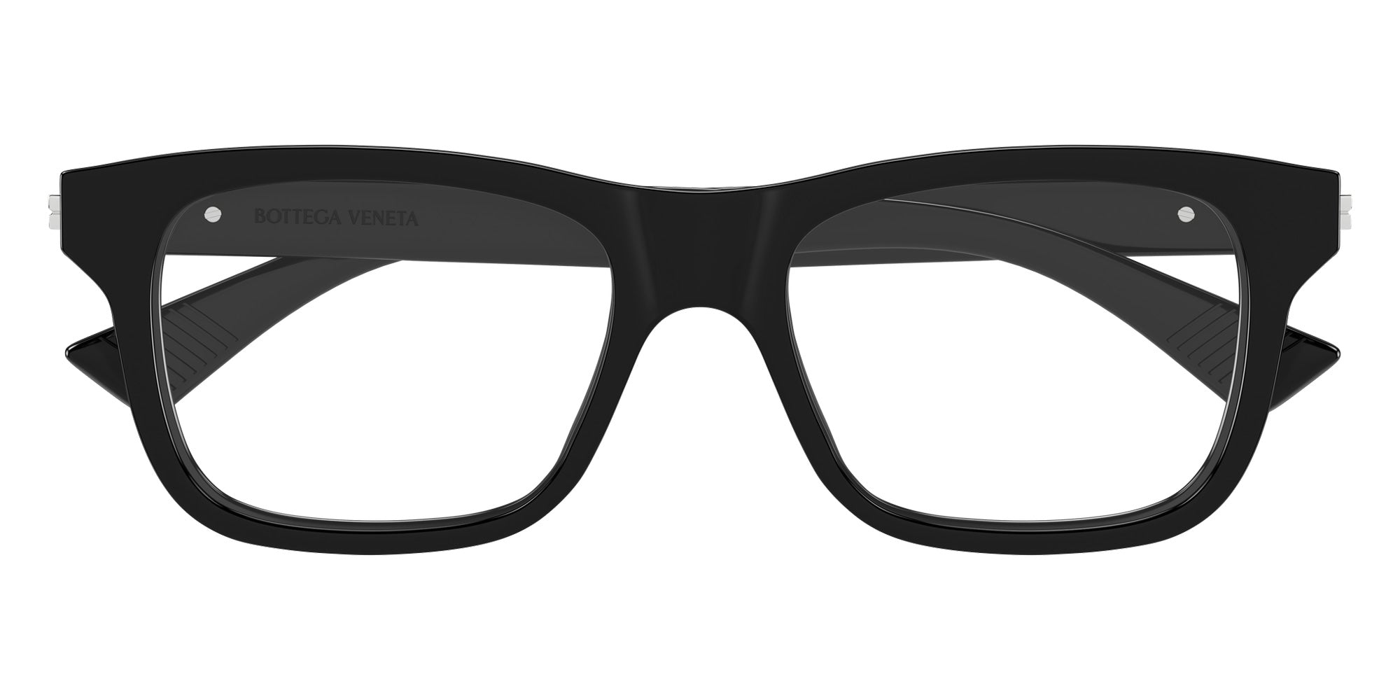 Black (005) Eyeglasses (BV1412O 005 54) by Bottega Veneta. Size: 54-18-145, Shape: Rectangle, Material: Recycled Acetate.