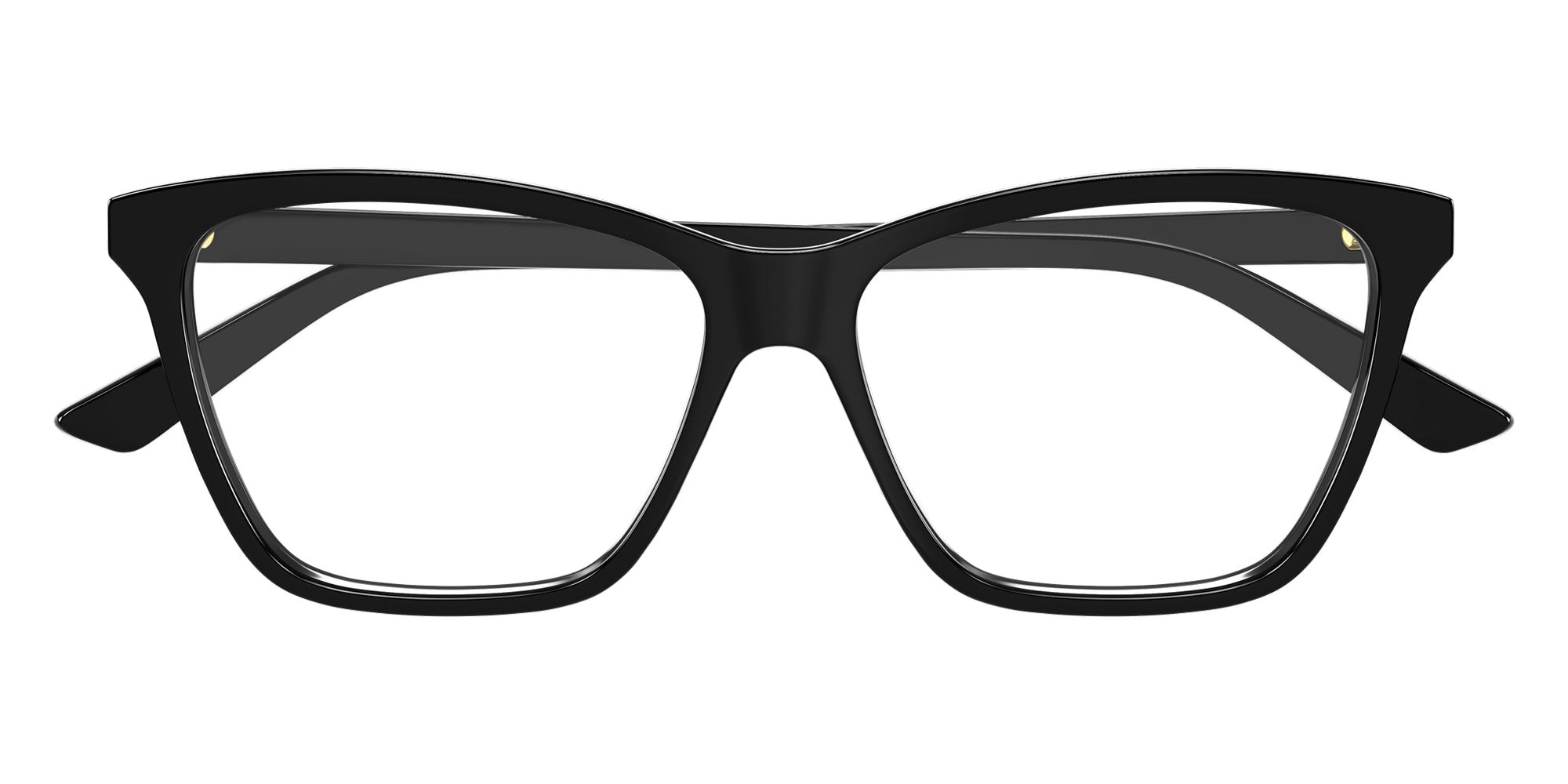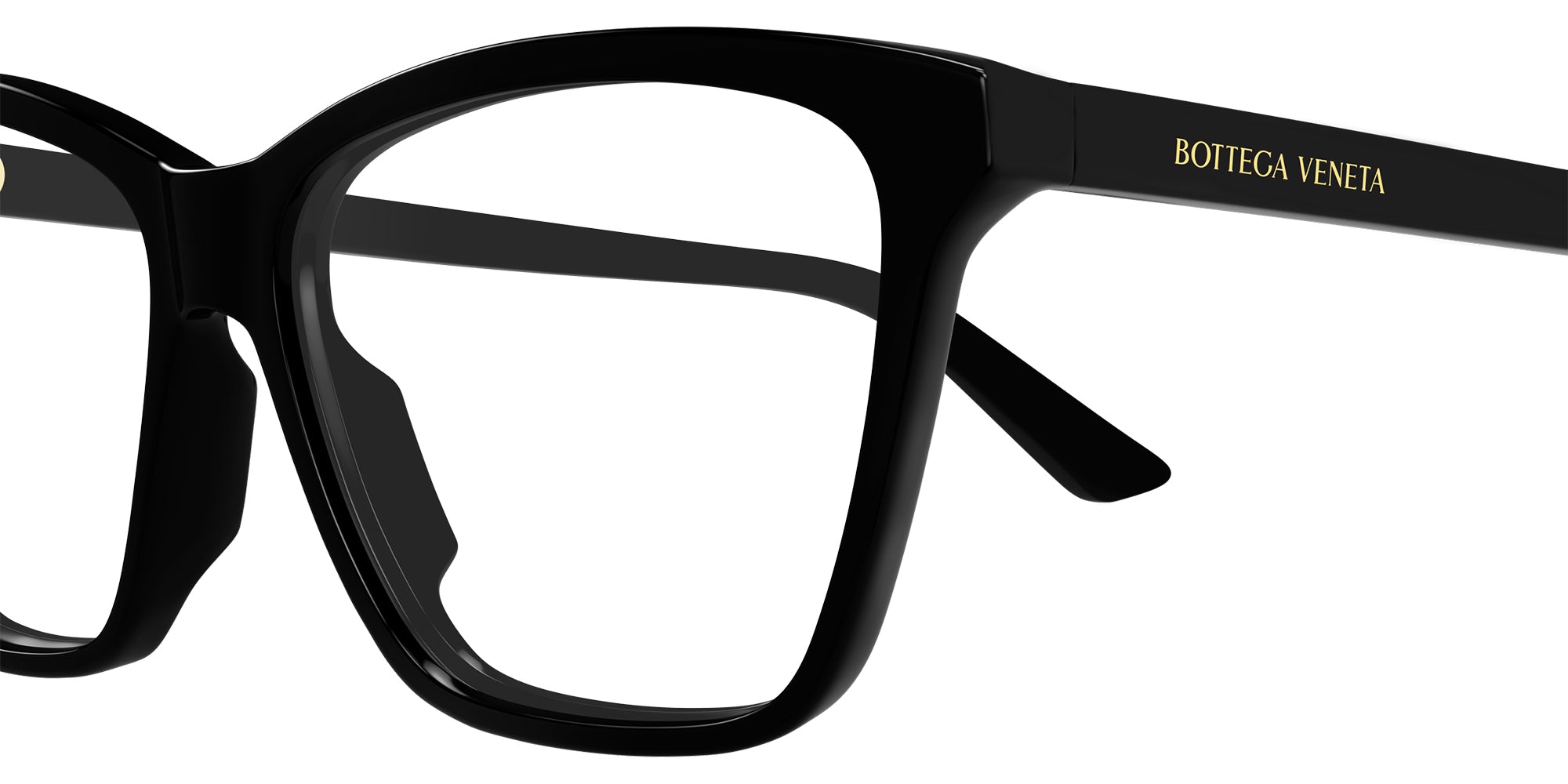 Black (001) Eyeglasses (BV1421O 001 55) by Bottega Veneta. Size: 55-14-145, Shape: Cat-Eye, Material: Recycled Acetate.