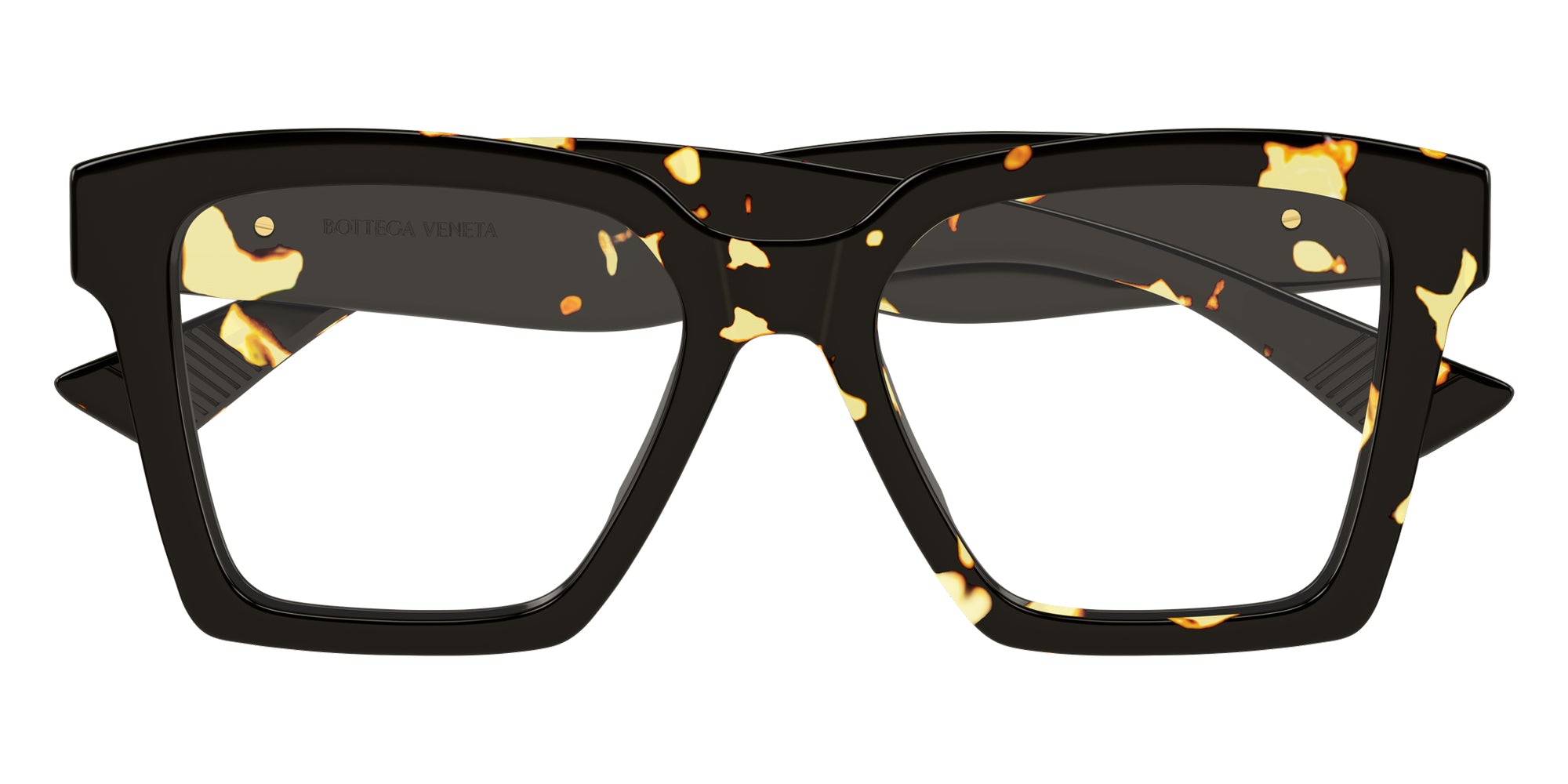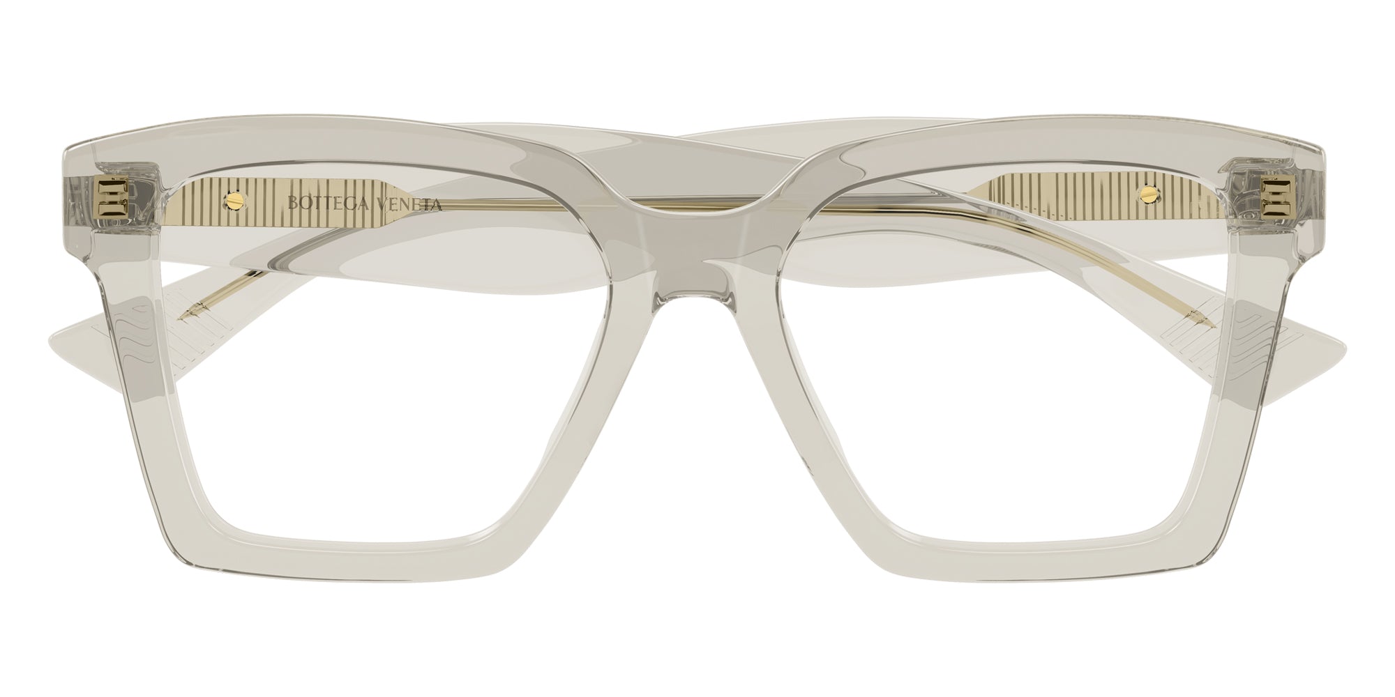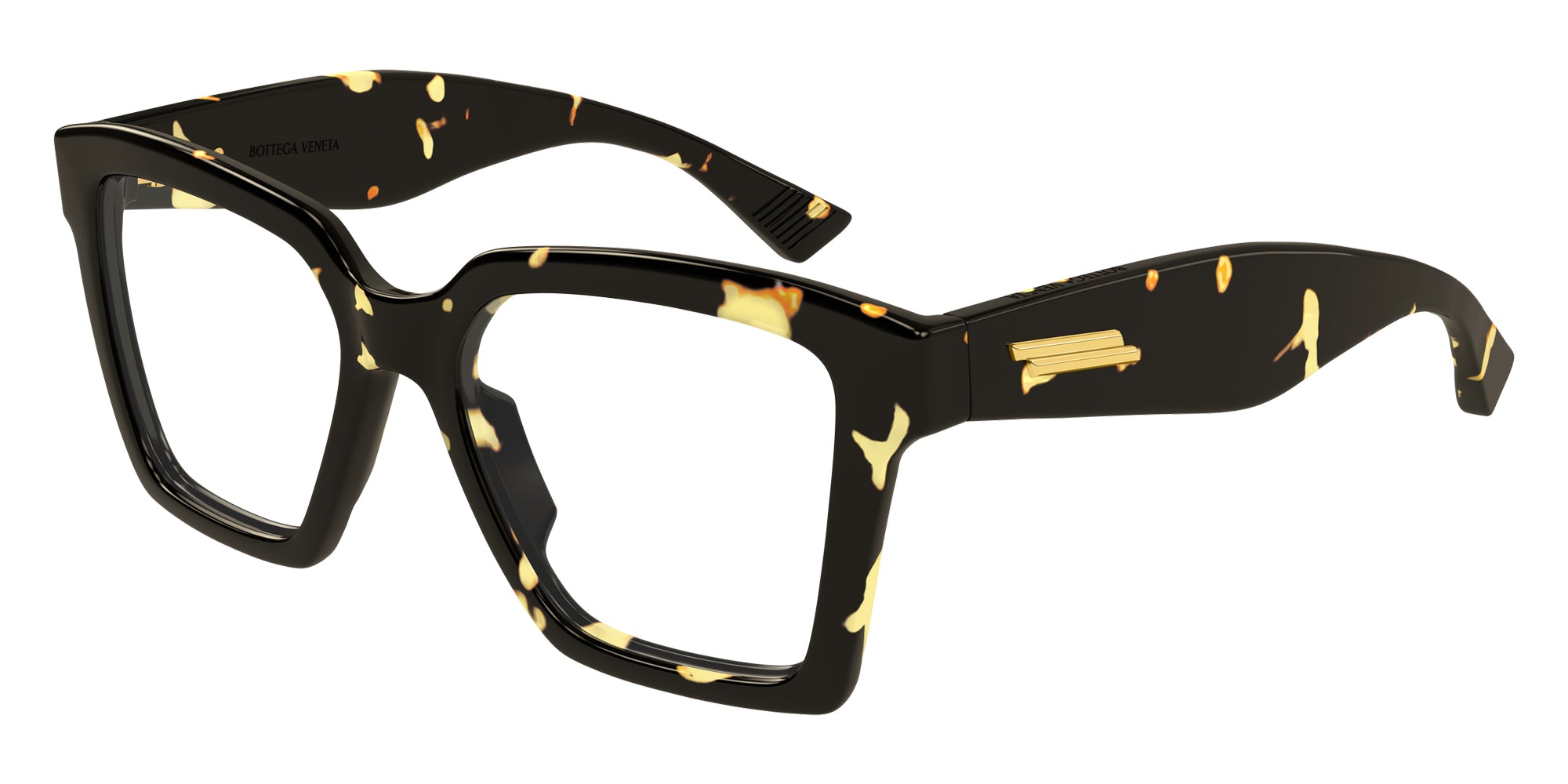 Brown (004) Eyeglasses (BV1458O 004 52) by Bottega Veneta. Size: 52-17-140, Shape: Cat-Eye, Material: Recycled Acetate.