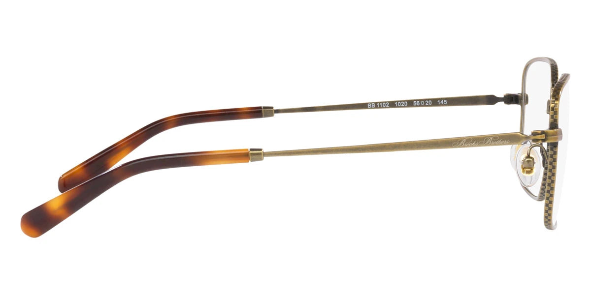 Antique Gold (1020) Eyeglasses (BB1102 1020 56) by Brooks Brothers™. Size: 56-20-145, Shape: Rectangle, Material: Metal.
