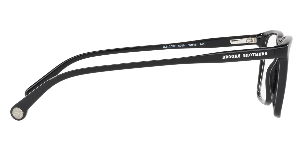 Black (6000) Eyeglasses (BB2037 6000 57) by Brooks Brothers™. Size: 57-16-145, Shape: Square, Material: Plastic.