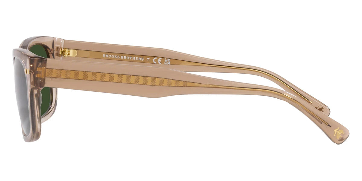Transparent Brown (615571) Sunglasses with Green Solid lenses (BB5047 615571 54) by Brooks Brothers™. Size: 54-21-145, Shape: Rectangle, Material: Plastic.