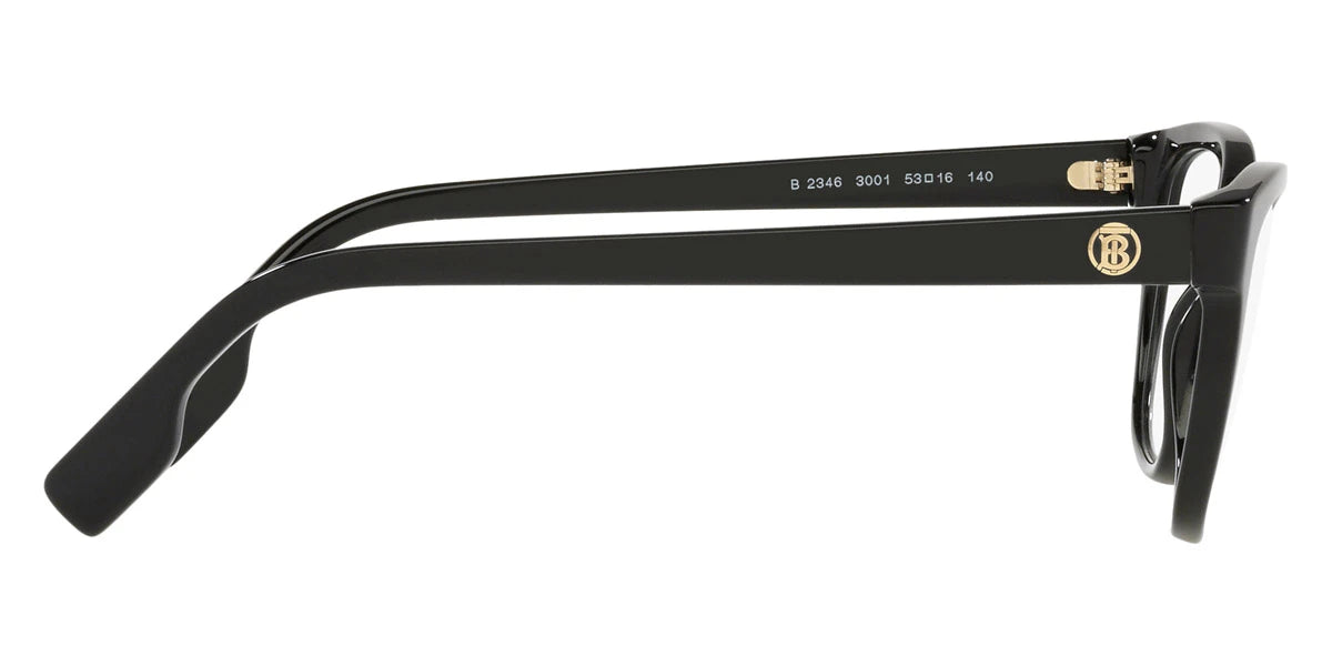 Black (3001) Eyeglasses (BE2346 3001 53) by BURBERRY™. Size: 53-16-140, Shape: Cat-Eye, Material: Plastic.