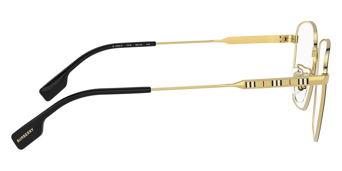 Gold (1017) Eyeglasses (BE1352D 1017 56) by BURBERRY™. Size: 56-18-145, Shape: Irregular, Material: Steel and Metal.