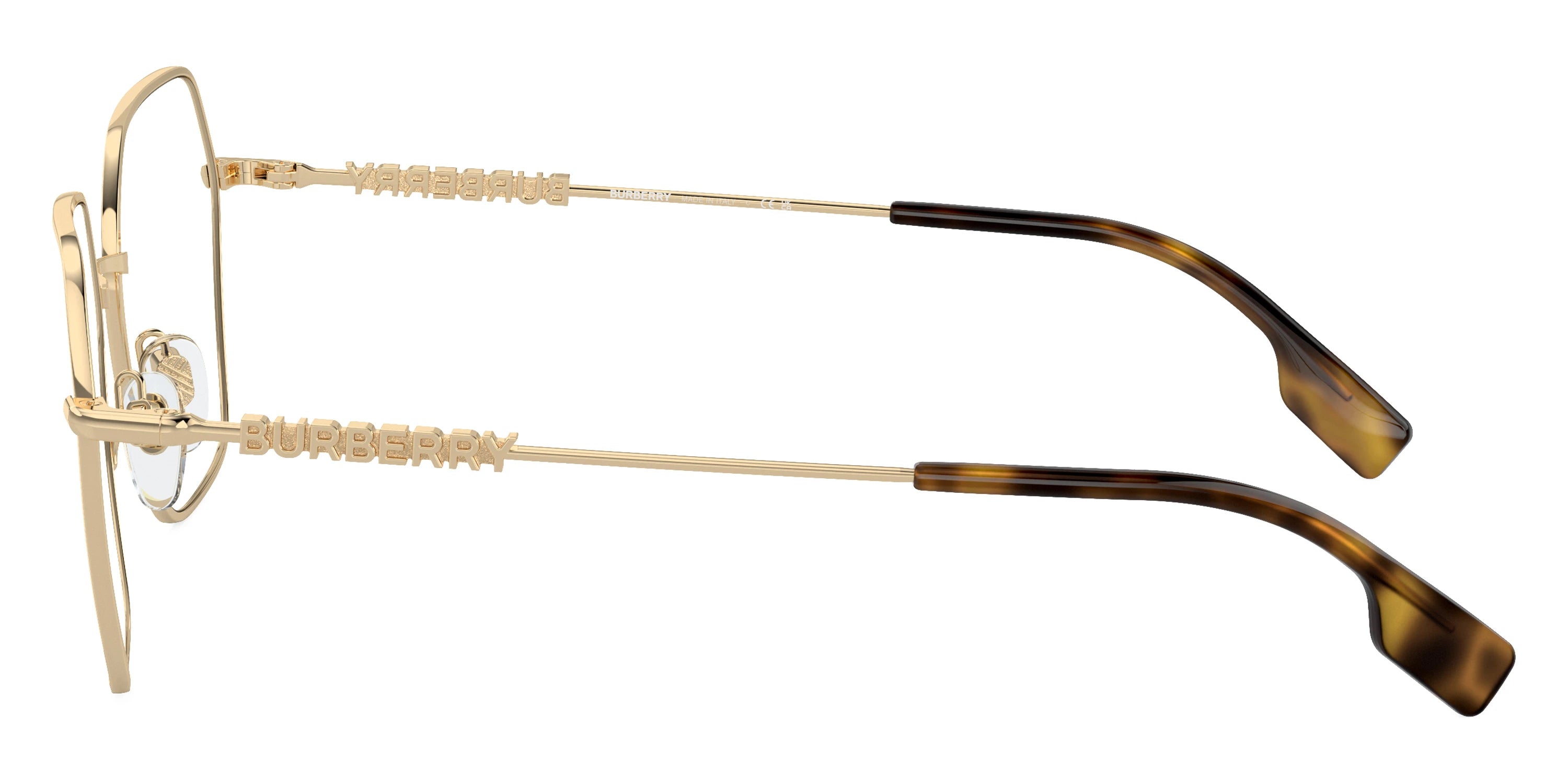 Light Gold (1109) Eyeglasses (BE1381 1109 54) by BURBERRY™. Size: 54-18-140, Shape: Irregular, Material: Steel and Metal.