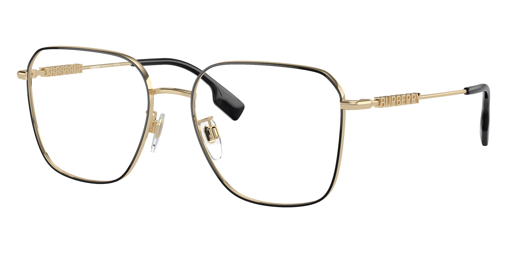 Black (1326) Eyeglasses (BE1382D 1326 55) by Burberry. Size: 55-17-140, Shape: Square, Material: Metal.