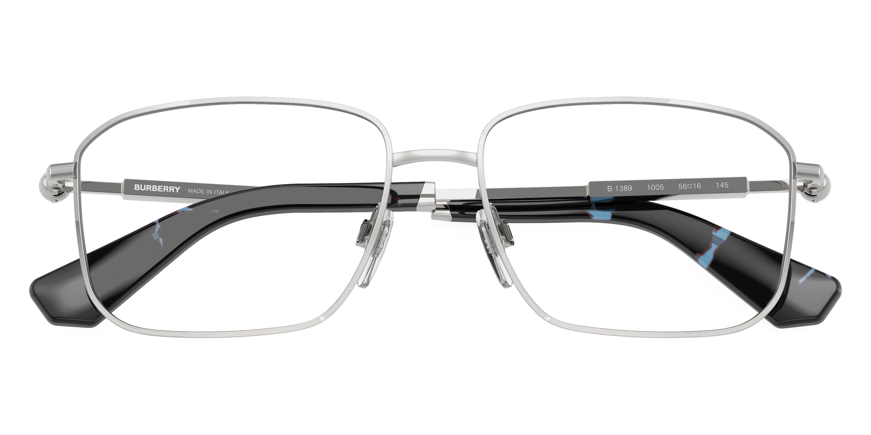 Gray (1316) Eyeglasses (BE1389 1316 56) by BURBERRY™. Size: 56-16-145, Shape: Rectangle, Material: Steel and Metal.