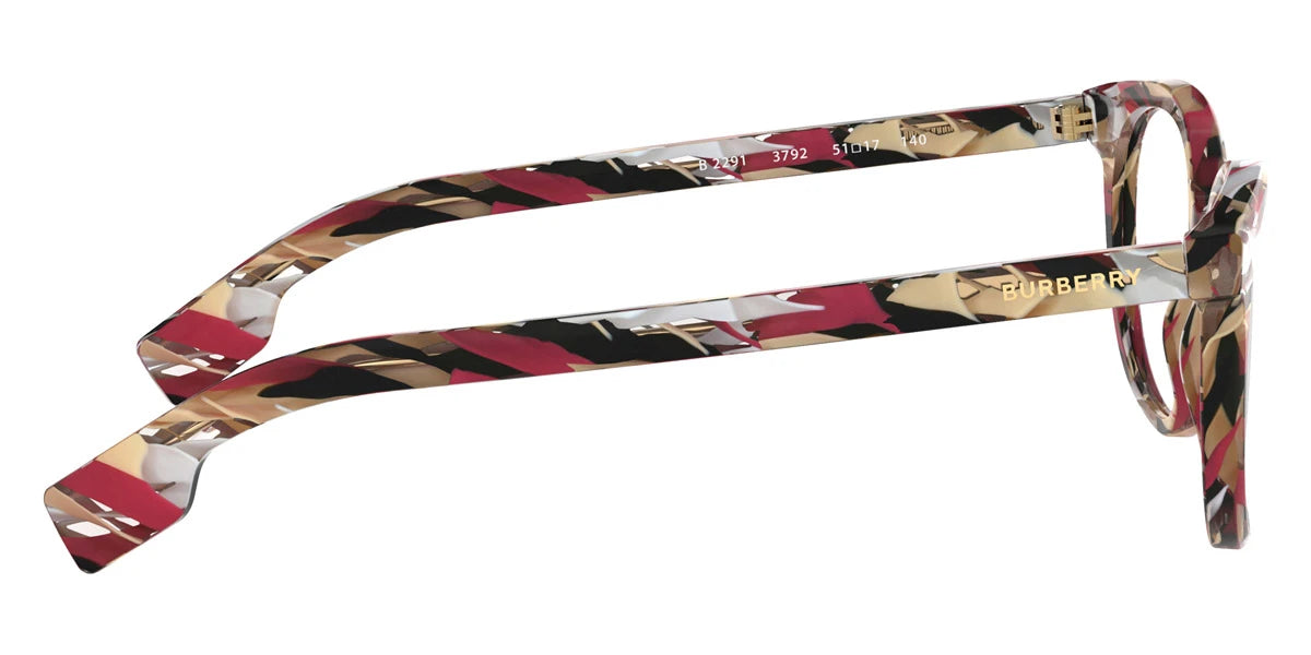 Striped Check (3792) Eyeglasses (BE2291 3792 51) by BURBERRY™. Size: 51-17-140, Shape: Square, Material: Plastic.