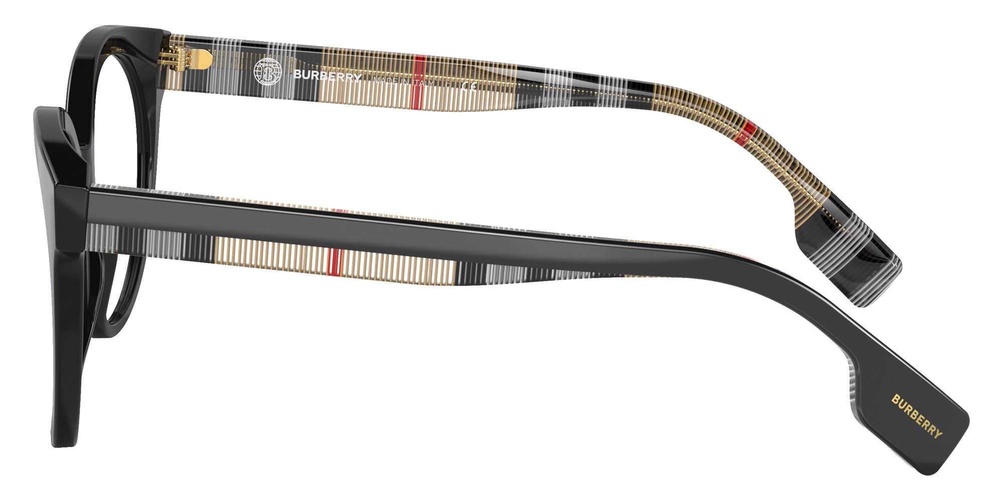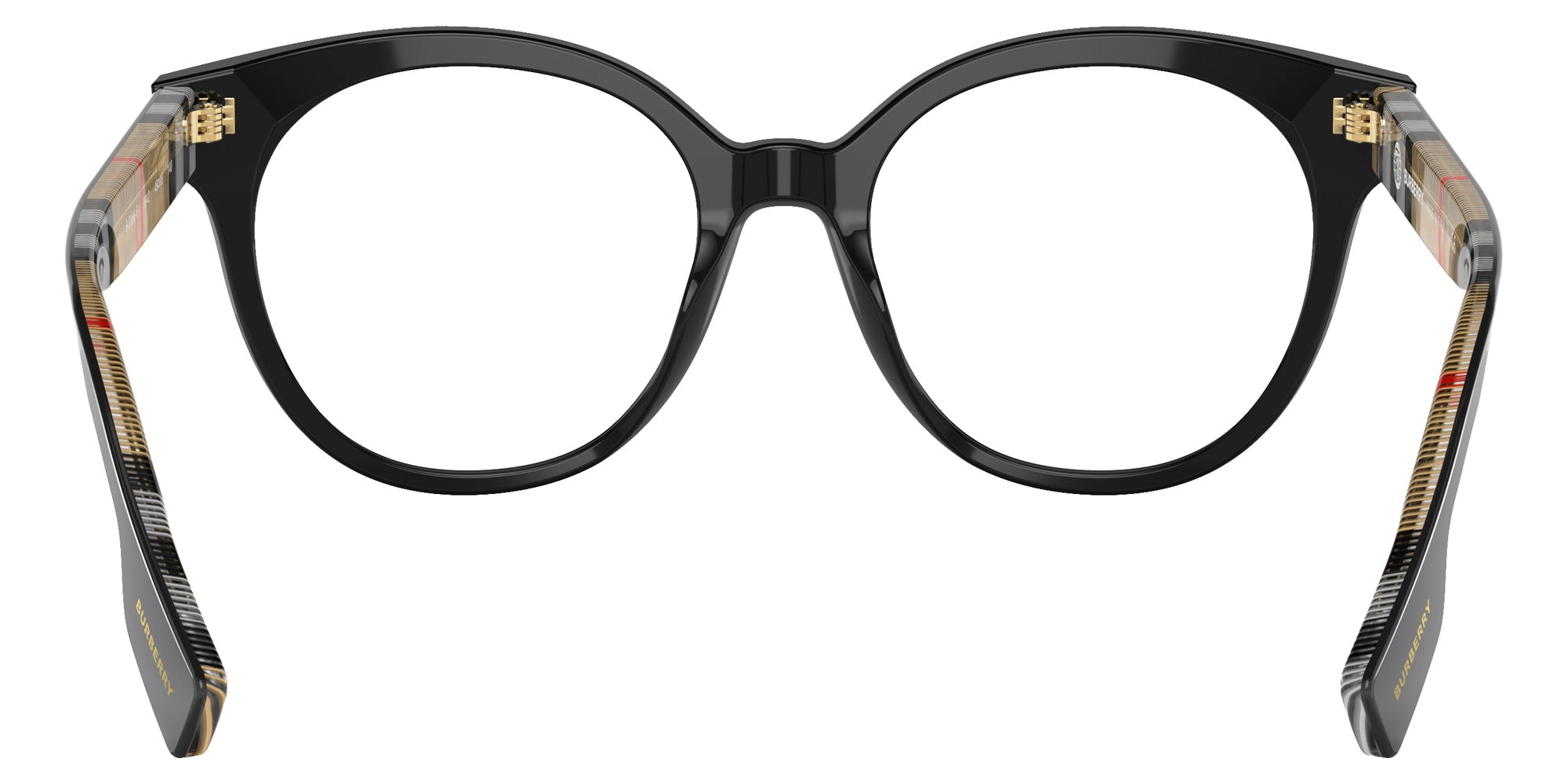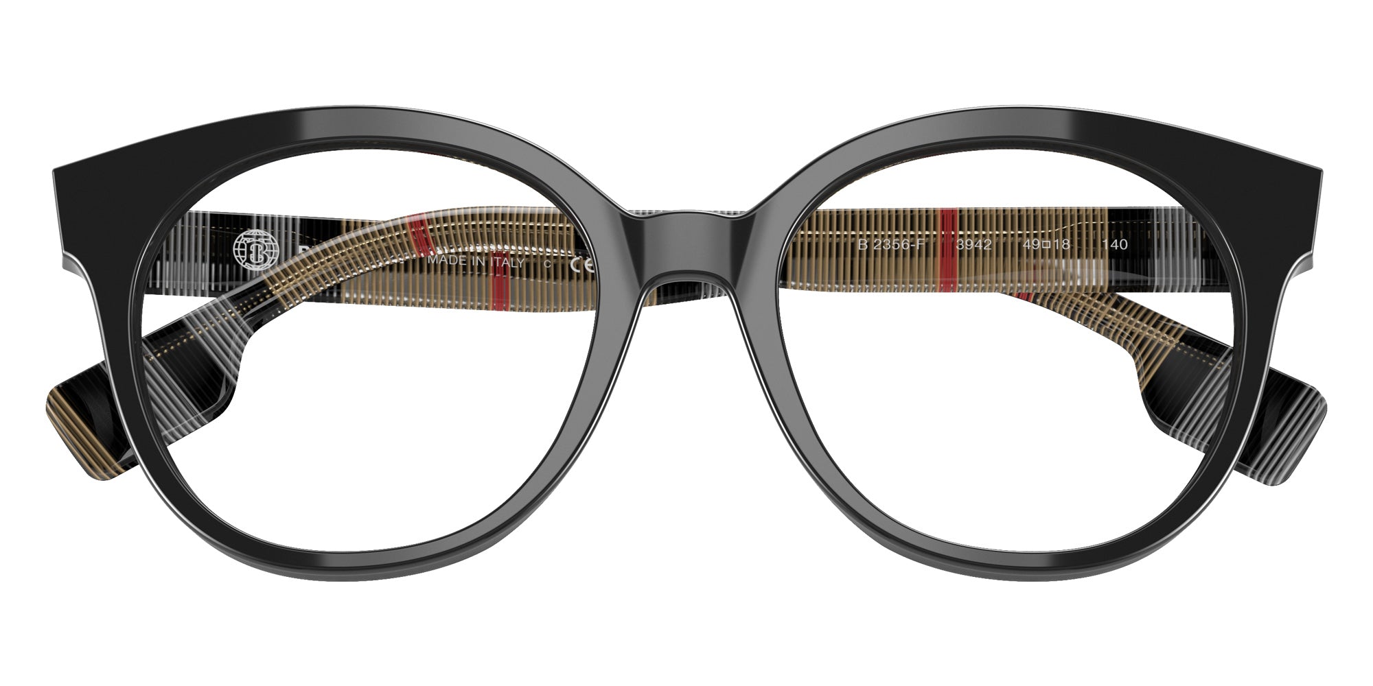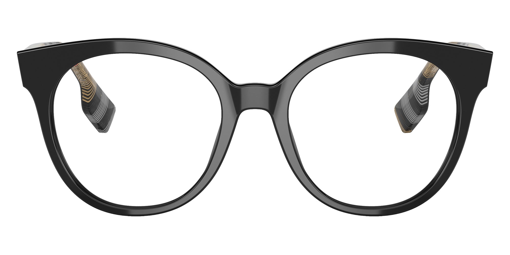 Black (3942) Eyeglasses (BE2356F Jacqueline 3942 51) by Burberry. Size: 51-18-140, Shape: Round, Material: Acetate.