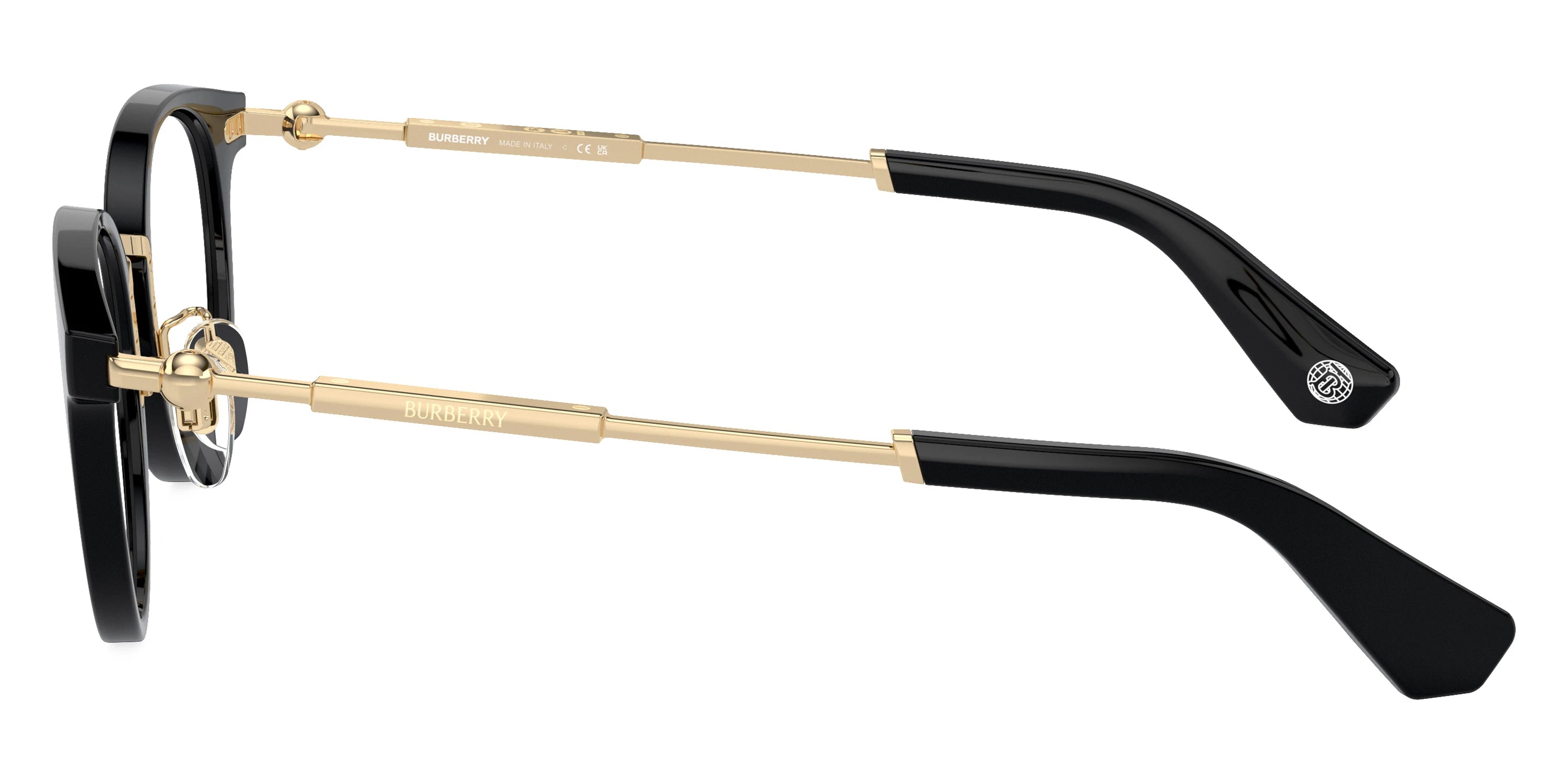Black/Light Gold (3001) Eyeglasses (BE2413D 3001 48) by BURBERRY™. Size: 48-21-140, Shape: Wayfarer, Material: Injected and Metal.