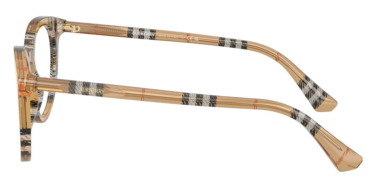 Beige/Check Beige (4167) Eyeglasses (BE2429 4167 48) by BURBERRY™. Size: 48-20-140, Shape: Round, Material: Acetate.
