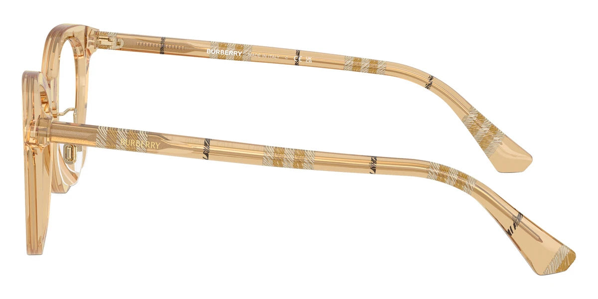 Beige/Check Beige (4167) Eyeglasses (BE2429F 4167 50) by BURBERRY™. Size: 50-20-140, Shape: Round, Material: Acetate.