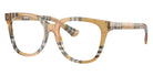 Check Beige (4201) Eyeglasses (BE2439 4201 50) by BURBERRY™. Size: 50-17-140, Shape: Wayfarer, Material: Acetate.