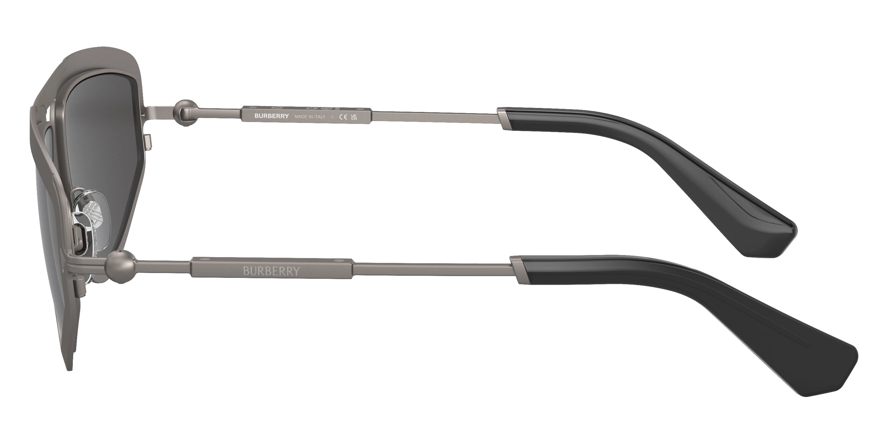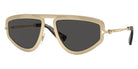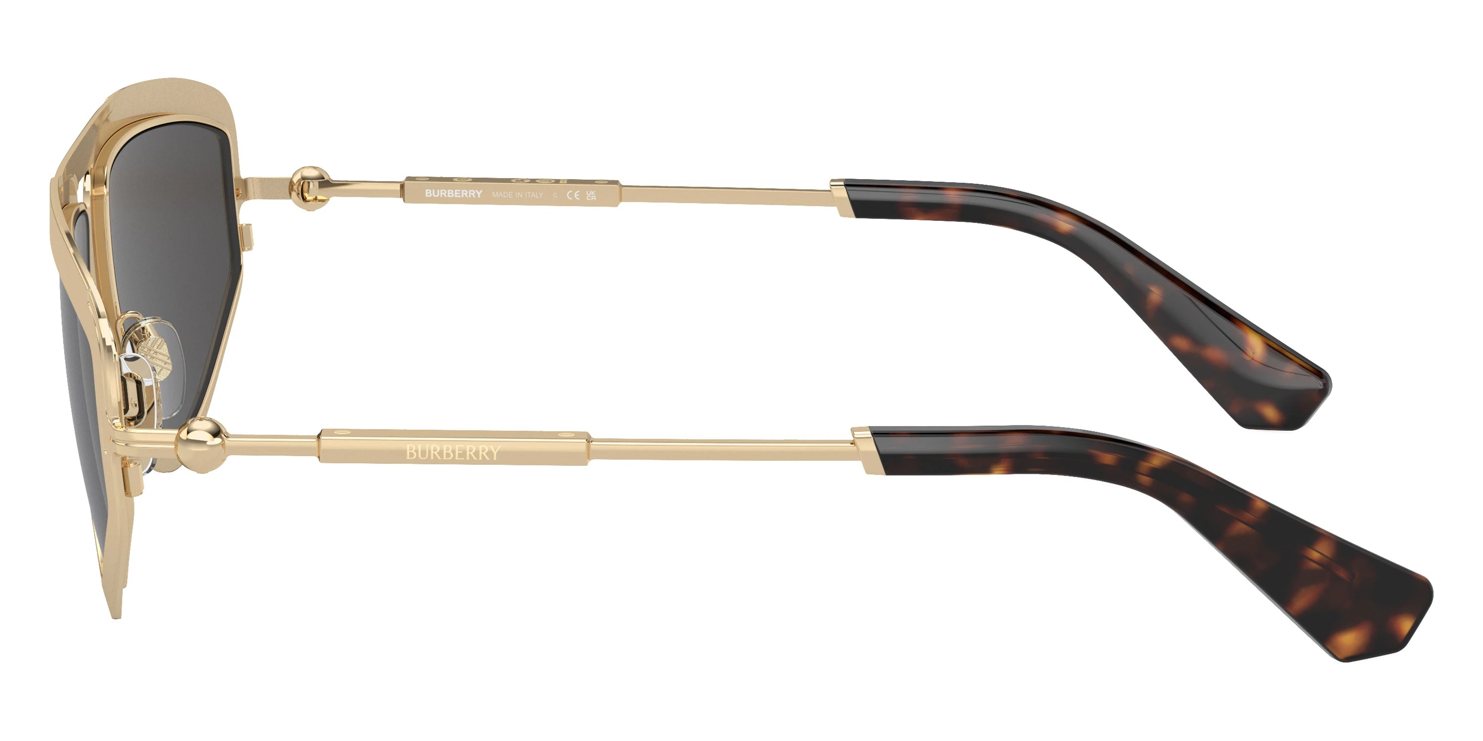 Light Gold (110987) Sunglasses with Dark Gray lenses (BE3150 110987 56) by BURBERRY™. Size: 56-19-140, Shape: Irregular, Material: Metal.