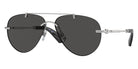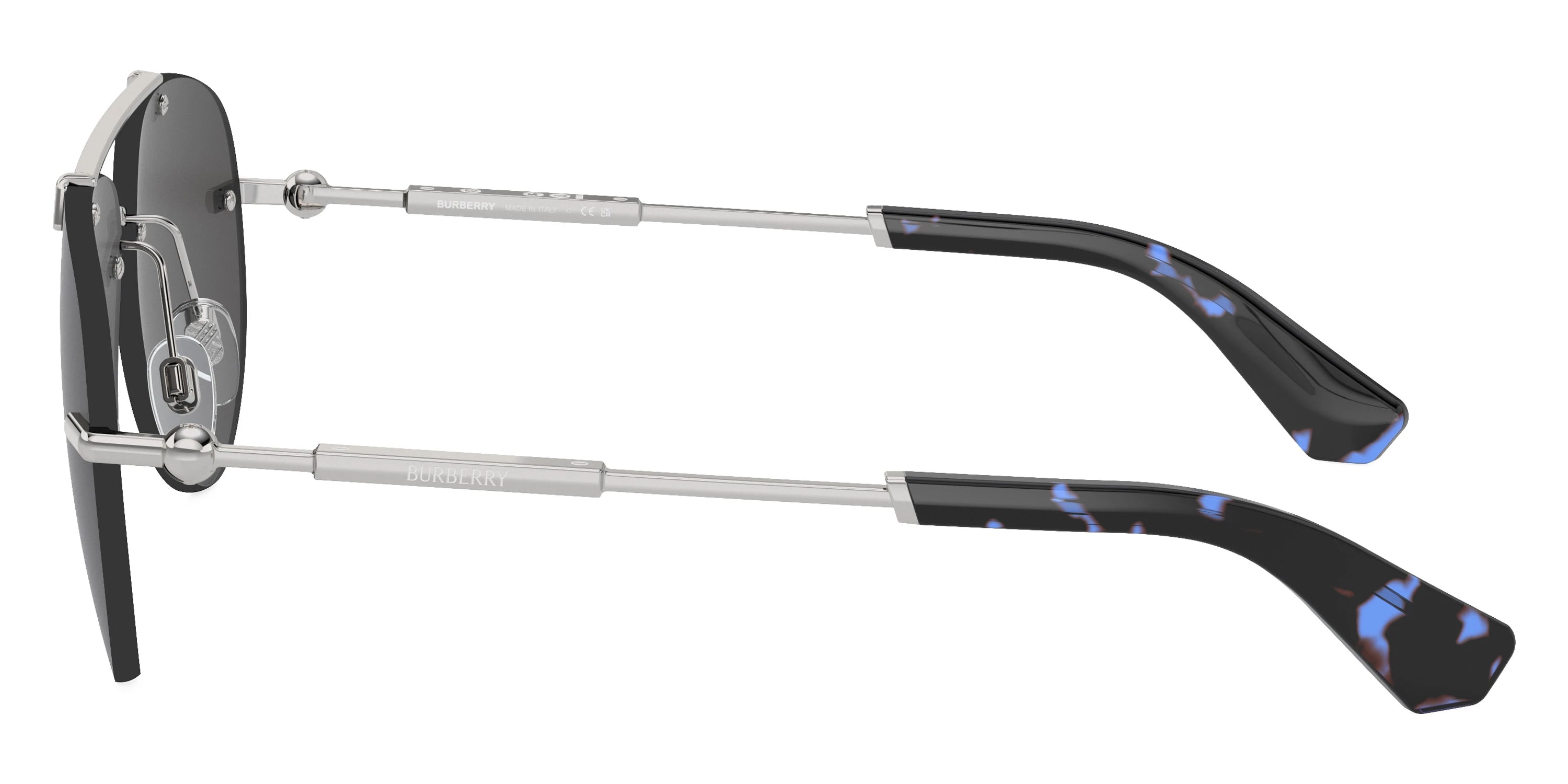 Silver (100587) Sunglasses with Dark Gray lenses (BE3151 100587 60) by BURBERRY™. Size: 60-13-140, Shape: Aviator, Material: Metal.