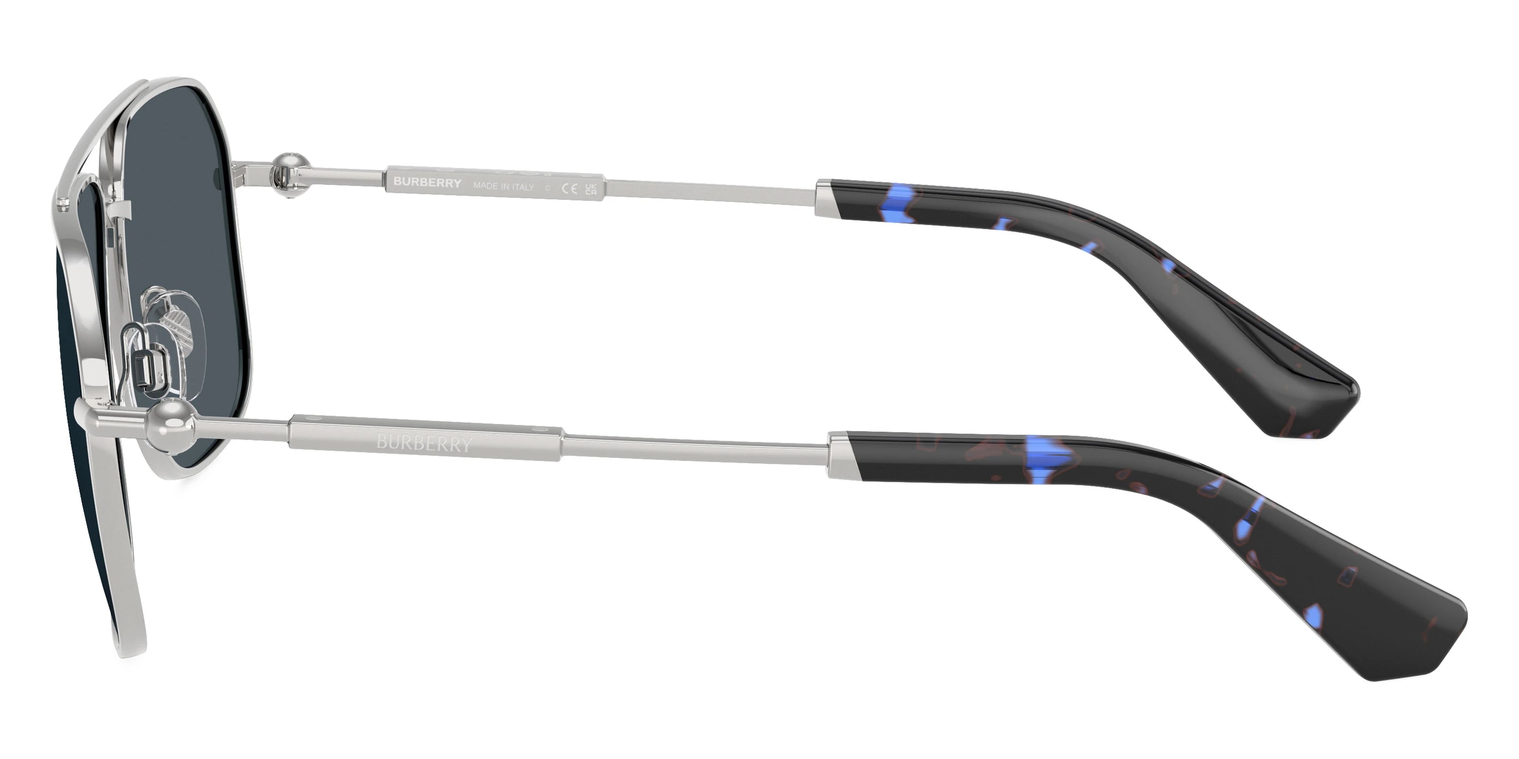 Silver (100587) Sunglasses with Dark Gray lenses (BE3159 100587 59) by BURBERRY™. Size: 59-16-145, Shape: Irregular, Material: Metal.